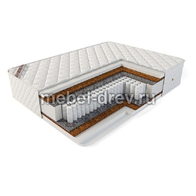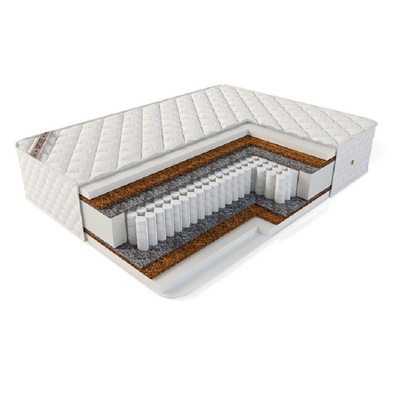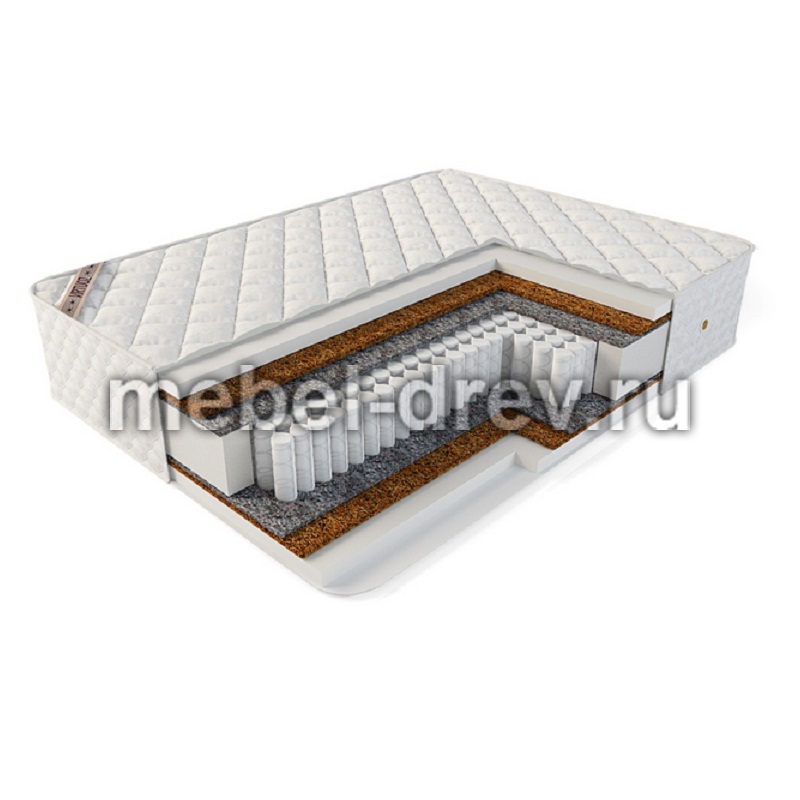 Симметричный матрас средней жесткости В основе матраса независимый качественный пружинный блок EVS 500 с 3 зонами жесткости для комфортного сна. В состав матраса входит латексированная кокосовая койра, придающая жесткость матрасу, а так же холлофайбер, который делает поверхность матраса более комфортной.
