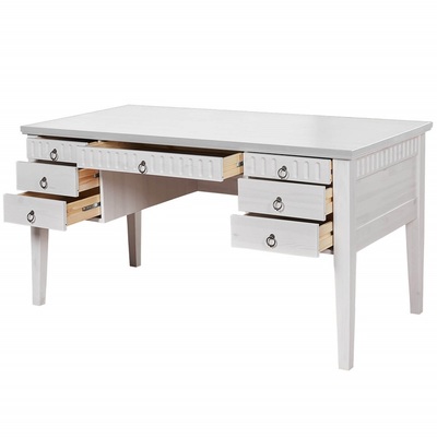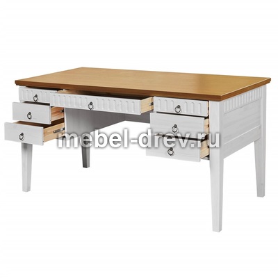 Элегантный письменный стол, широкий, удобный и функциональный, с ящичками для мелочей. Сделан из натурального дерева, массива сосны. К столу можно также приобести тумбу с ящиками Хельсинки 03. Серия Мальта-Хельсинки производства белорусского завода ММЦ.