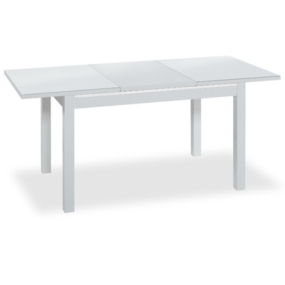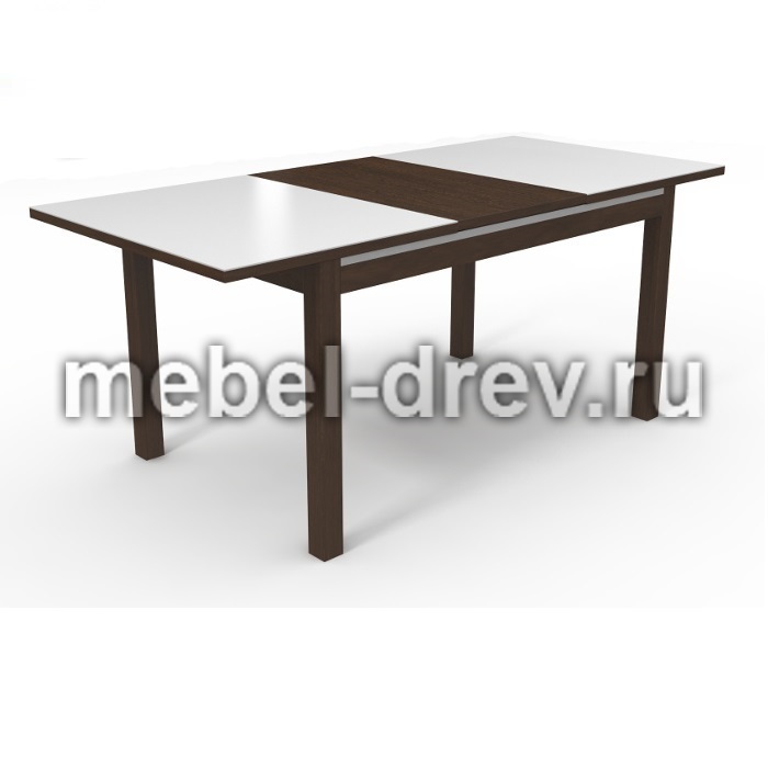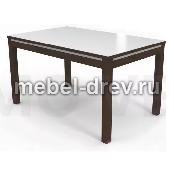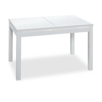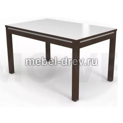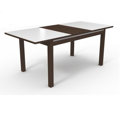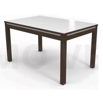 Раскладной обеденный стол Темпо в стиле модерн. Стол сделан на деревянном каркасе, со стеклянной столешницей. Совместное производство Италии-Хорватии. Раскладыватся с помощью вкладки 50 см до 186 см. По периметру подстолья проходит полоска с металлическим блеском. Столешница-закаленное стекло, бархатистое на ощупь.