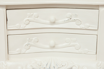 Маленький изящный комод в французском стиле из массива красного дерева, украшенный резьбой ручной работы. Натуральное дерево, окрашенное в светлые тона, сохраняет неповторимую фактуру и искусственные отпечатки времени в виде мелких трещин, потертостей, червоточин. Если вы хотите создать в собственном доме простую, теплую и вместе с тем изысканную обстановку, то стиль Прованс в этом случае подходит больше всего.