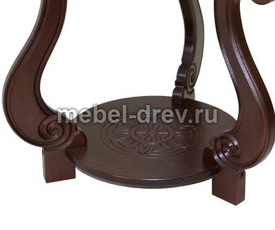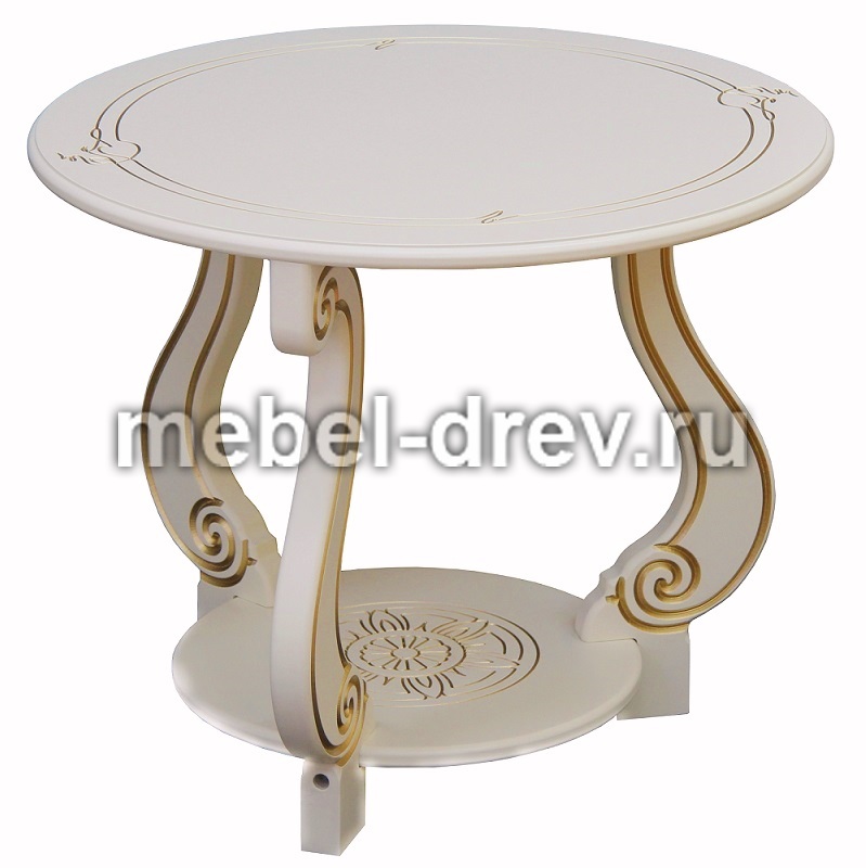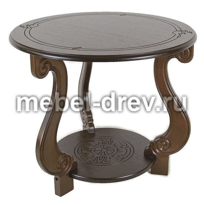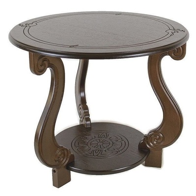 Журнальный столик в классическом стиле в гостиную или спальню. Ножки и подстолье столика украшает изящная резьба. Круглая столешница перекликается с такой же формой подстолья. Столик изготавливается в двух цветах: классический темно-коричневый и слоновая кость. Столик упакован в одну коробку, легко собирается. Смотрите также вариант стола-журнальный стол Грация С (со стеклом).