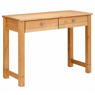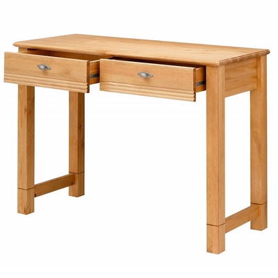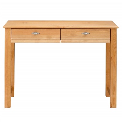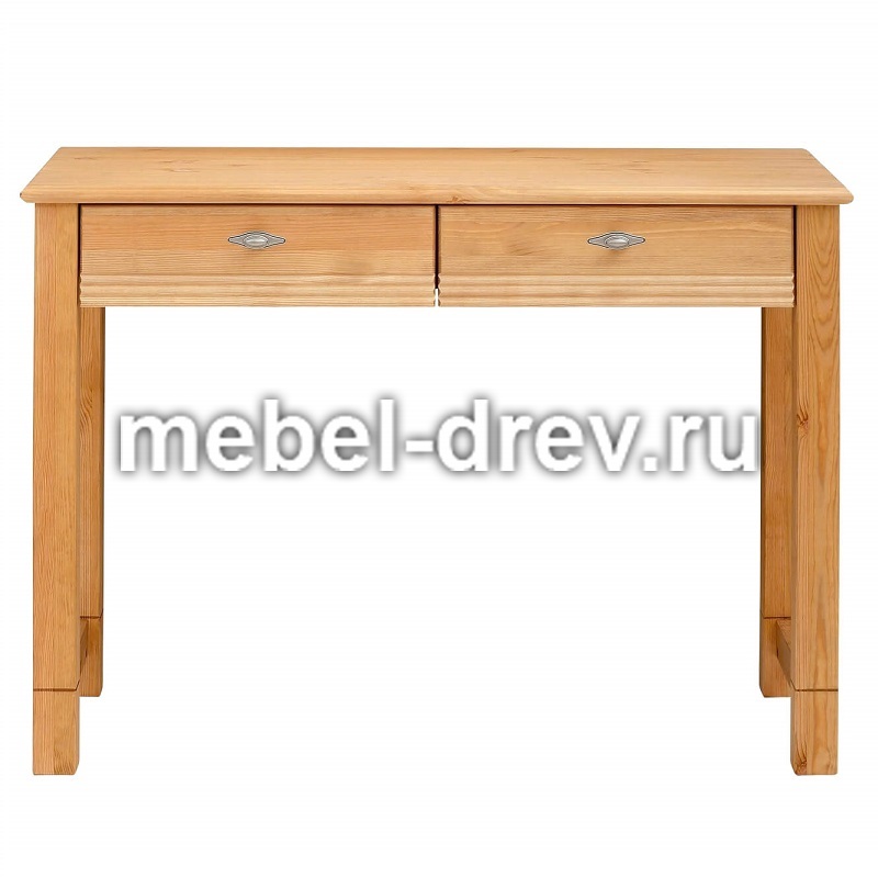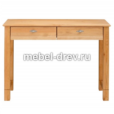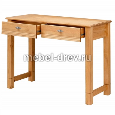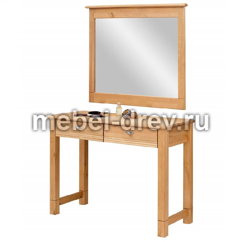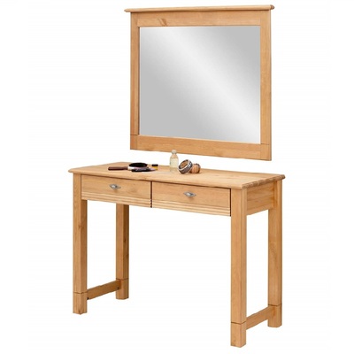 Туалетный столик с зеркалом от белорусской фабрики ММЦ. Изготовлен из массива сосны, с двумя выдвижными ящиками на направляющих. Коллекцию Рауна отличают прямые выверенные линии, а выкрас изделия в оттенок бейц придает мебели легкость, делает интерьер жизнерадостным. Дополняет мебель по стилю качественная фурнитура немецкого производства. Серия Рауна выкрашена лакокрасочными материалами на водной основе, которые сохраняют натуральный вид древесины сосны и ее экологическую чистоту.