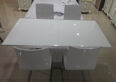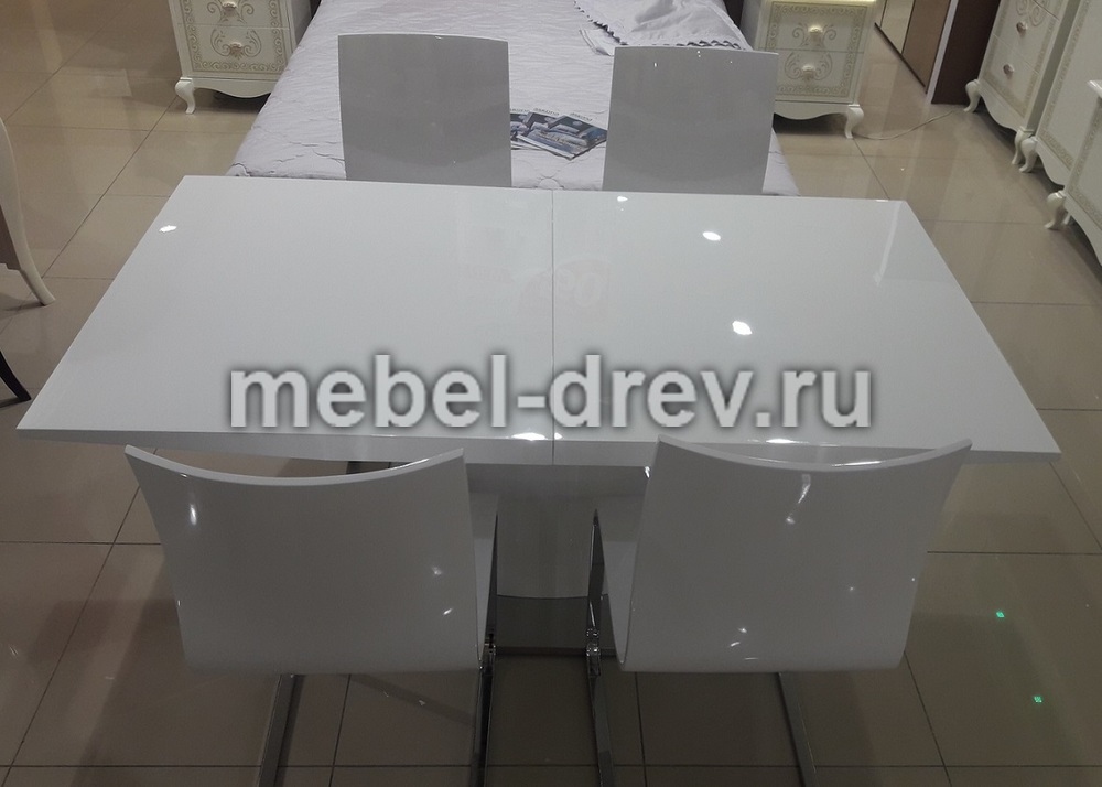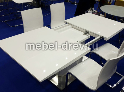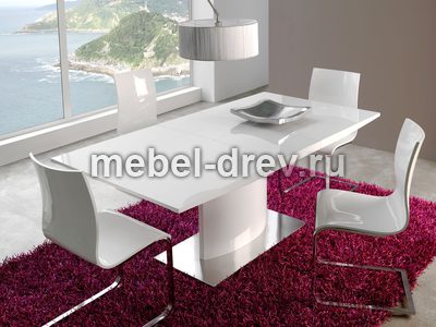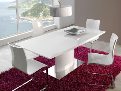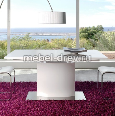 Простой и элегантный современный стол в стиле модерн от испанской фабрики Dupen. На надежном основании из МДФ и металла, столешница из лакированного МДФ. Стол раскладной, с помощью вкладки 40 см раскладывается c 1.6 м до 2 м.