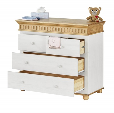Детский комод для пеленания из массива сосны с безопасным покрытием на водной основе. Серия Хельсинки производства белорусского завода ММЦ. Отдельно можно заказать стеллаж (размещен с задней стороны комода, см.фото). Продается отдельно как детский комод, а также с надстройкой для пеленания-ее можно купить отдельно.