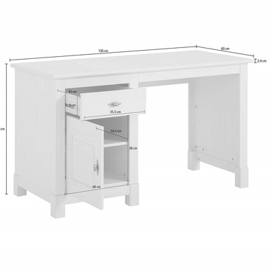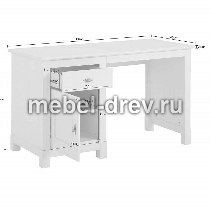 Письменный стол Рауна из массива сосны. Стол окрашен в легкий оттенок натурального дерева "бейц" и наверняка понравится любителям светлой мебели в стиле Прованс. У стола один выдвижной ящик и полочка за распашной дверцей. Тумбу можно собрать и справа и слева. При изготовлении мебели используются лакокрасочные материалы на водной основе, которые сохраняют натуральный вид древесины и ее экологическую чистоту. Поэтому мебель Рауна отлично подходит для детской комнаты.