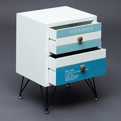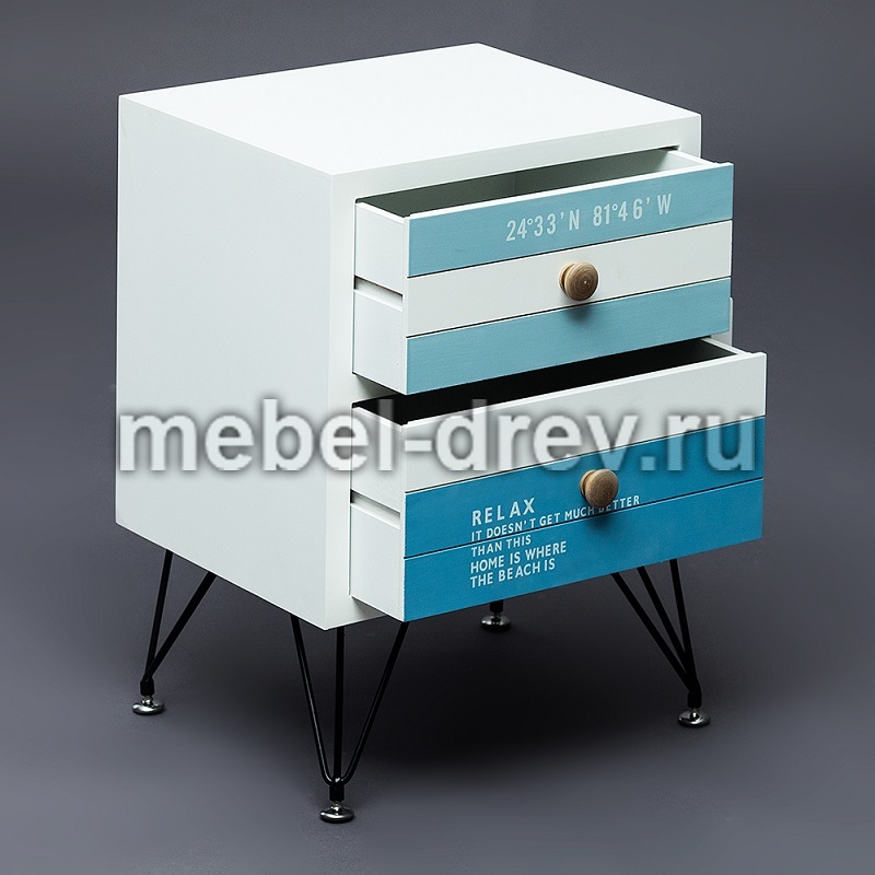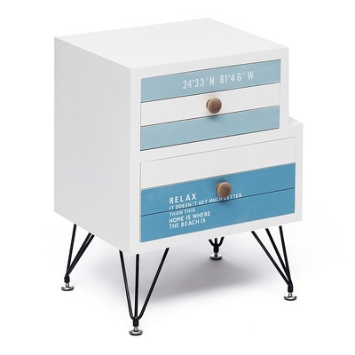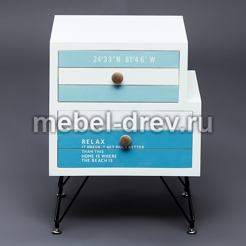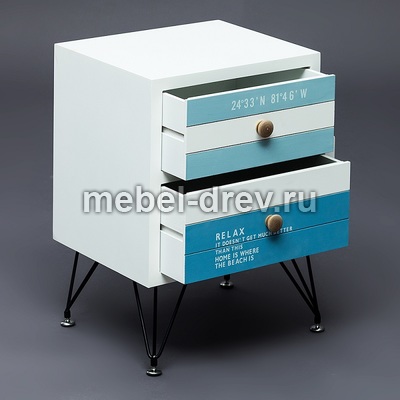 Маленькая тумба с 2 выдвижными ящиками, в оригинальном исполнении. Тумба сделана в ретро стиле 60-х годов и в стиле яхтинговой средиземноморской тематики. Отлично впишется в современные интерьеры в стиле модерн или лофт, или подойдет в качестве детской мебели. Сделана из металла и дерева павловния.