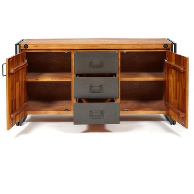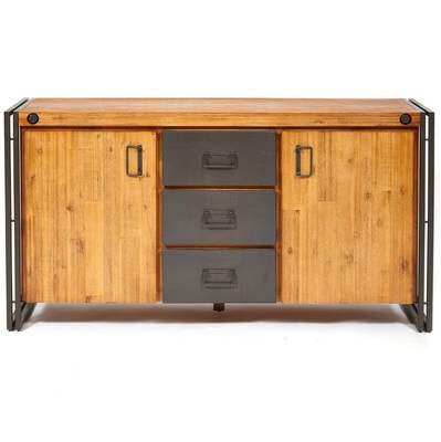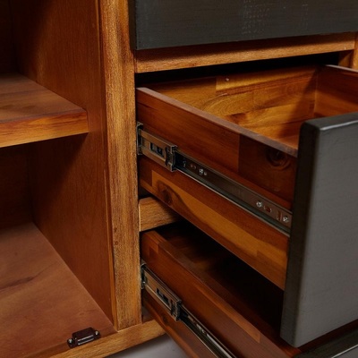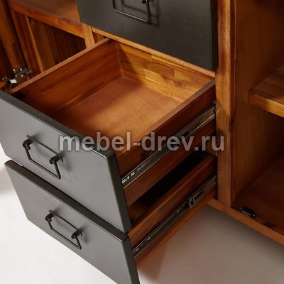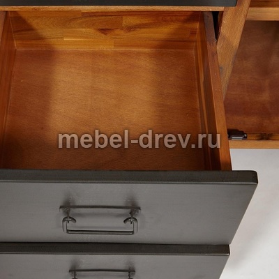 Строгий и лаконичный дизайн комода из коллекции CITY выгодно выделяют его в интерьере. Стилизованная фурнитура, контрастное сочетание светлых и черных фасадов, крупные гайки с шайбами, врезанные в кромку столешницы. Закрытые отделения с полками и объемные выдвижные ящики обеспечивают возможность хранения огромного количества предметов. Комод изготовлен из клееного массива акации, классическое продольное браширование, поперечная обработка для создания следов «пилы» и покрытие натуральным маслом подчеркивают природную красоту древесины. Обработанное по данной технологии дерево обладает повышенной прочностью, долговечностью и не требует специального ухода.