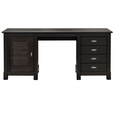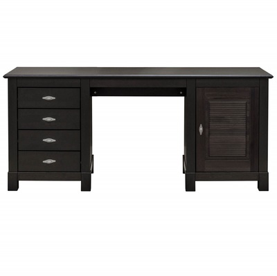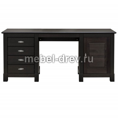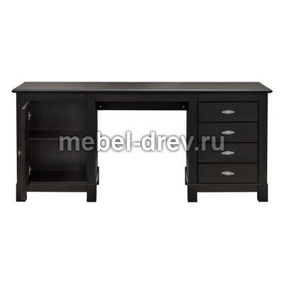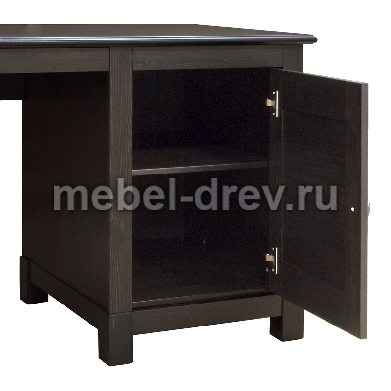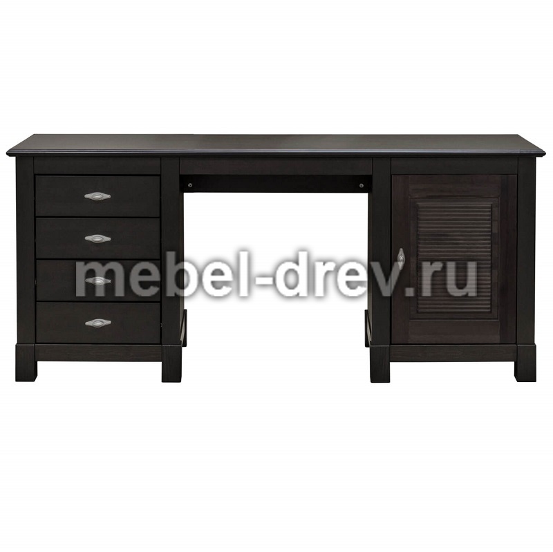Большой письменный стол Рауна с 2 тумбами. Сделан на белорусской фабрике ММЦ из массива сосны. Стол станет хорошим компаньоном в вашей работе. Никто не откажется работать за столом, который сделан из натурального дерева и имеет множество мест для хранения. У стола 2 тумбы. В одной из них 4 выдвижных ящика для документов и мелочей, во второй-полочка за распашной дверцей. Тумбы можно разместить и справа и слева. Благородный темный цвет стола-колониал-как нельзя лучше подчеркивает прямые формы и строгую геометрию изделия, и придется по душе любителям классической мебели.