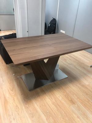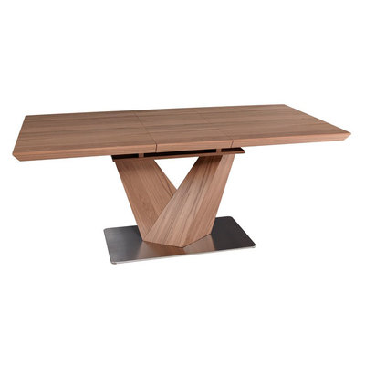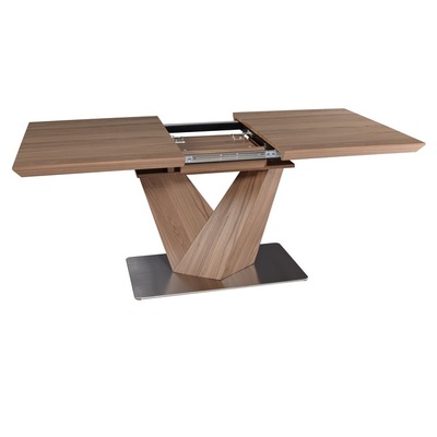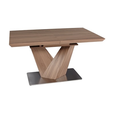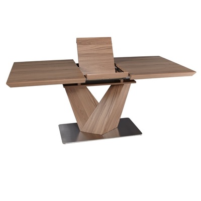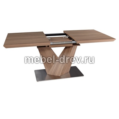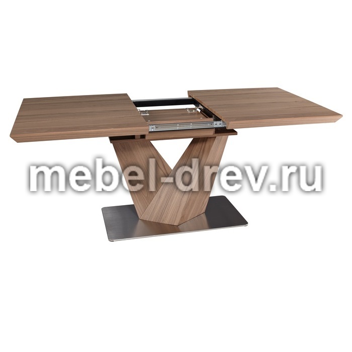 Стильный современный раскладной стол на основании из нержавеющей стали. Раскладывается на 40 см, с 1,40 до 1,8 метра, столешница и вставка покрыты меламином. К такому столу подойдут стулья в любой цветовой гамме, варианты стульев можно посмотреть ЗДЕСЬ.