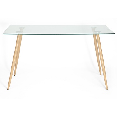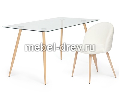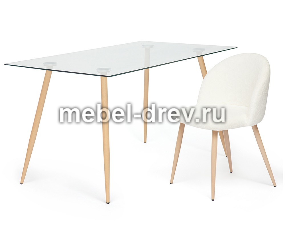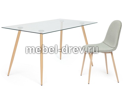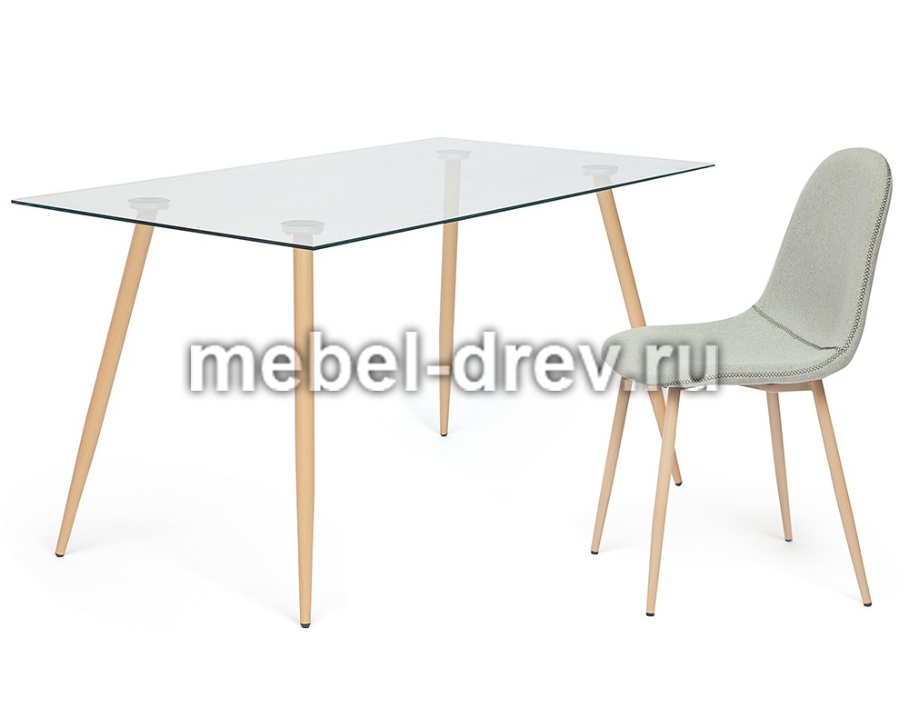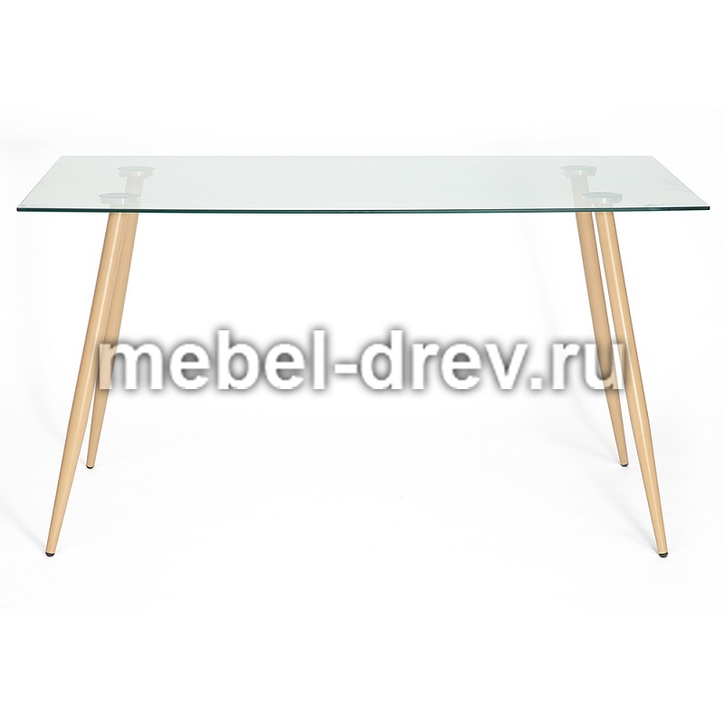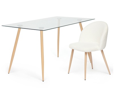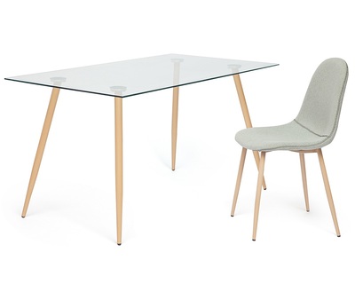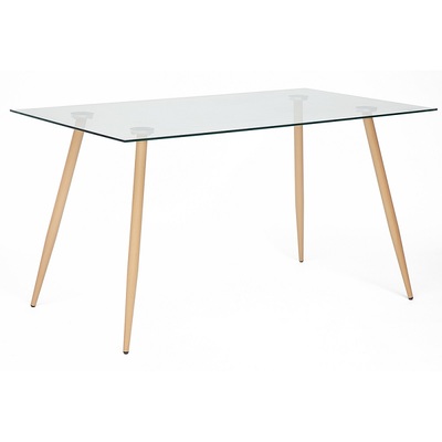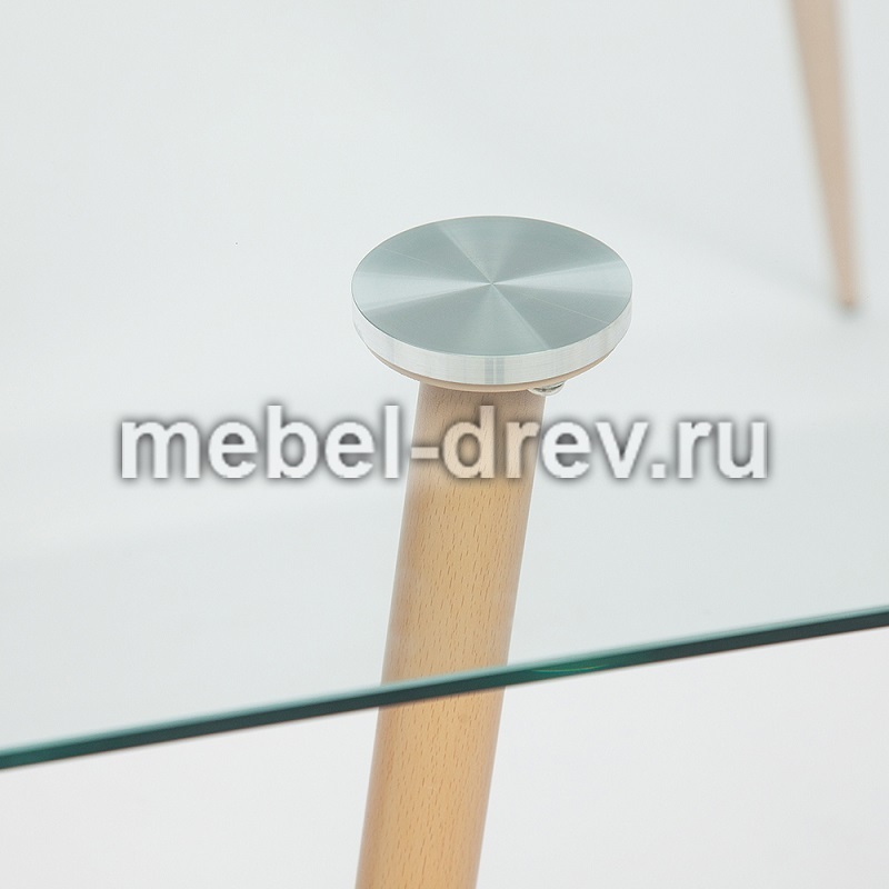 Обеденный стол София со стеклянной столешницей, рассчитан на свободное размещение 6 гостей. У стола София металлические ножки, окрас которых имитирует древесину бука и столешница из закаленного стекла. Стеклянная столешница ударопрочна, жаропрочна и устойчива к бытовой химии. Стол нераскладной.