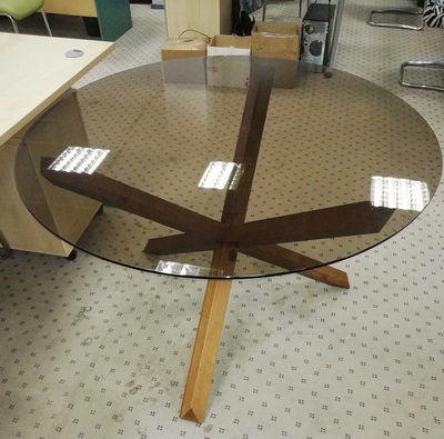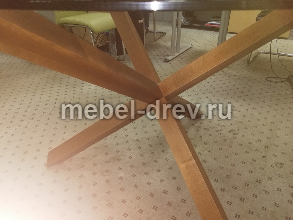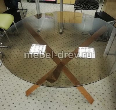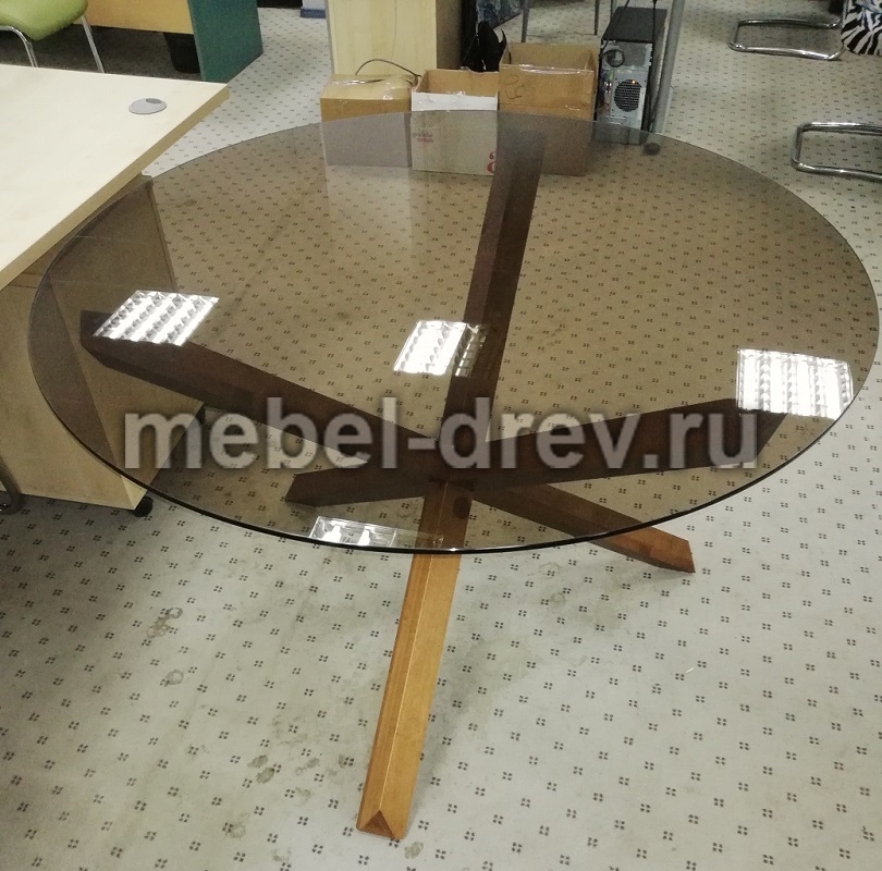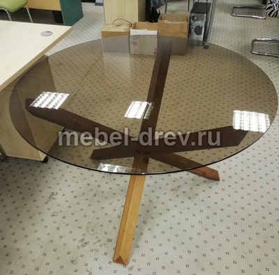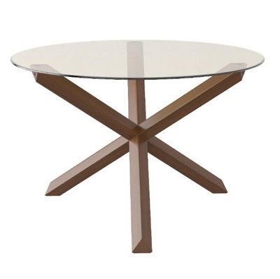 Стильный современный стол для гостиной Cross. Основание стола сделано из массива бука, на трёх перекрещенных элементах, они надёжно удерживают столешницу из закаленного стекла, с благородной коричневой тонировкой.