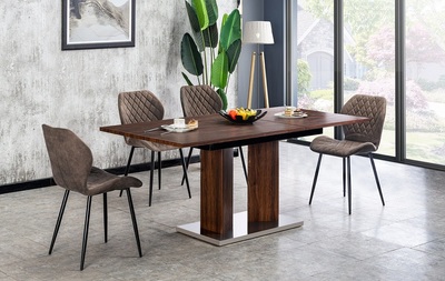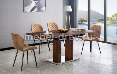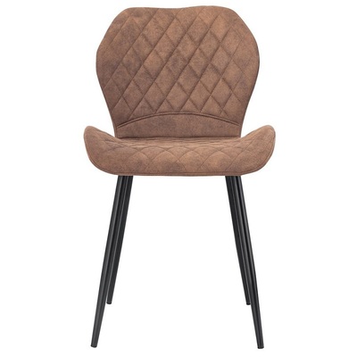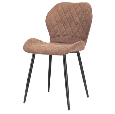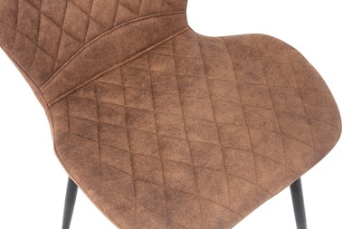 Стильный и удобный стул для гостиной или кухни. Стул изготовлен на каркасе из металла, сиденье и спинка обиты тканью. Стул украшен фигурной прострочкой. Стул надежен и удобен в уходе и использовании.