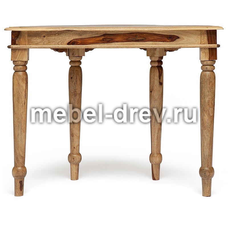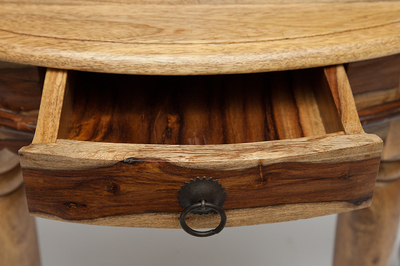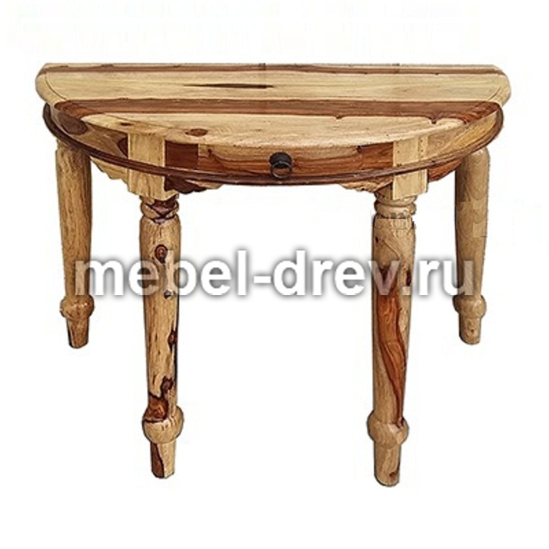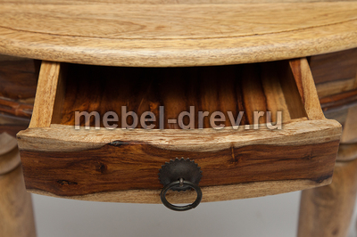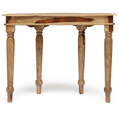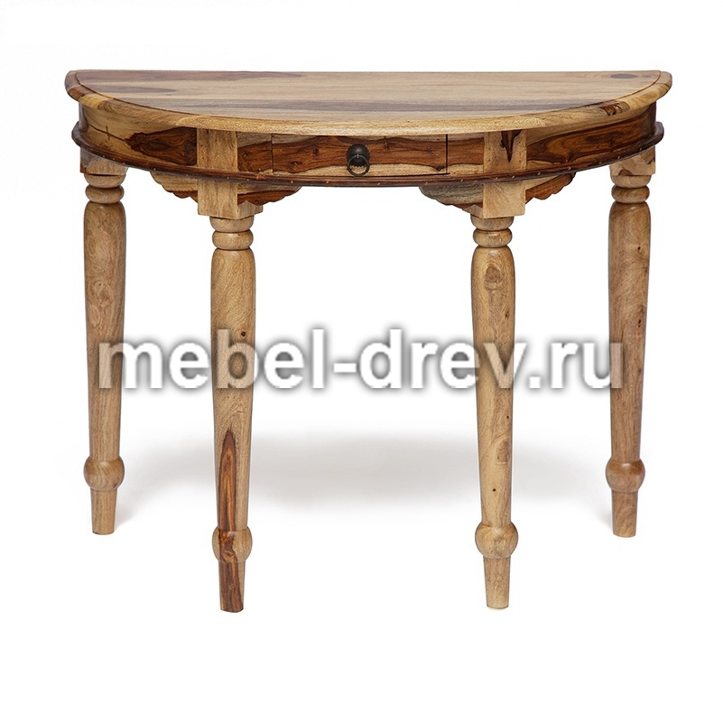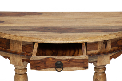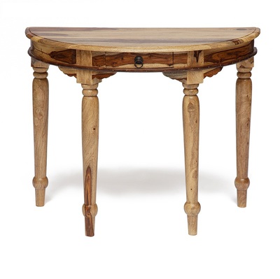 Консольный столик из натурального дерева-массива палисандра. Массив палисандра-знаменитое розовое дерево Индии. Его уникальные качества: разнообразие текстуры, удивительная прочность и долговечность издавна привлекали мастеров для производства мебели. У консольного столика Бомбей выдвижной ящик для хранения мелочей с винтажной фурнитурой из патинированной латуни.
