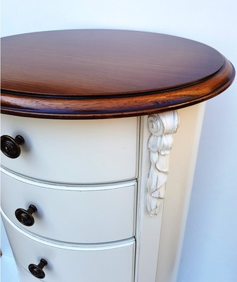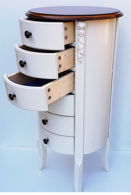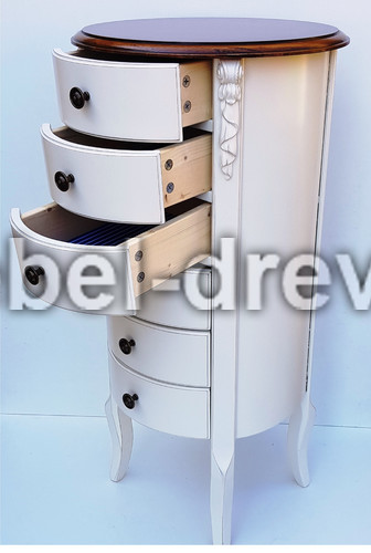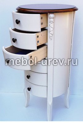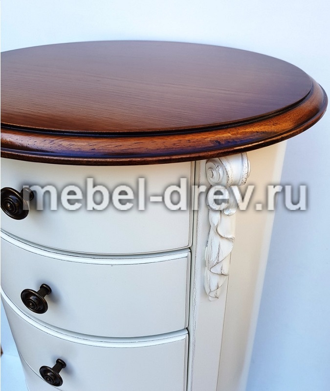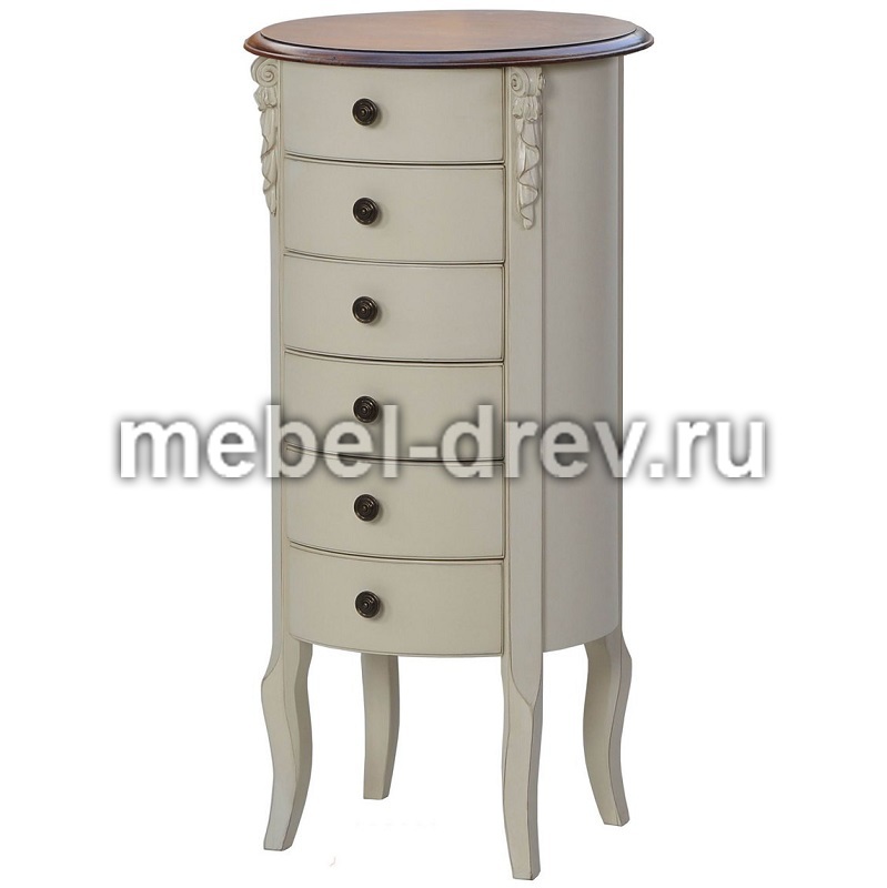 Изящный комод в стиле Прованс, из коллекции мебели White Rose. Комод изготовлен из массива березы, в белом цвете с эффектом старения, с контрастным топом итальянский орех. У комода шесть выдвижных ящиков, патинированных по краям фасадов. Резные украшения, а также фурнитура придают комоду изысканность. Комод украсит любую комнату, как гостиную, так и спальню и прихожую.