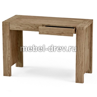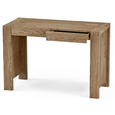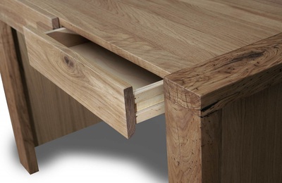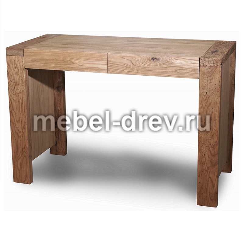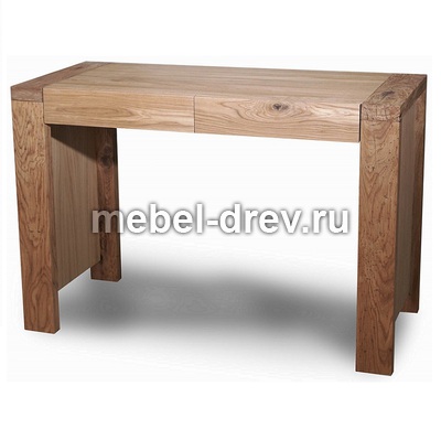 Многофункциональный стол в современном стиле Лофт. Стол может использоваться как туалетный стол, и как письменный, а также в качестве консоли. У стола 2 выдвижных ящика, с направляющими европейского производства Hettich. Направляющие снабжены доводчиком и механизмом бесшумного открытия и закрытия. Отделка мебели серии РИВА-мебель покрыта прозрачным натуральным масляным покрытием GRUNDIEROL BORMA WACHS. Фасадные поверхности из массива древесины подбираются по породе и рисунку. Прозрачная отделка фасадных поверхностей не скрывает многообразие природного цветового различия древесины дуба, а также сучки, маленькие трещинки и червоточины (имитация искусственного старения).