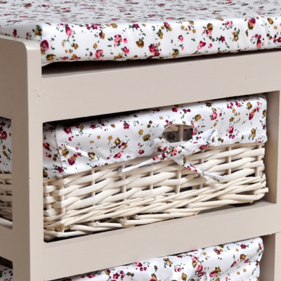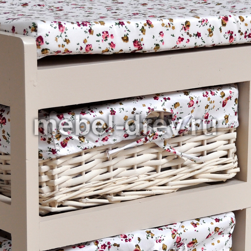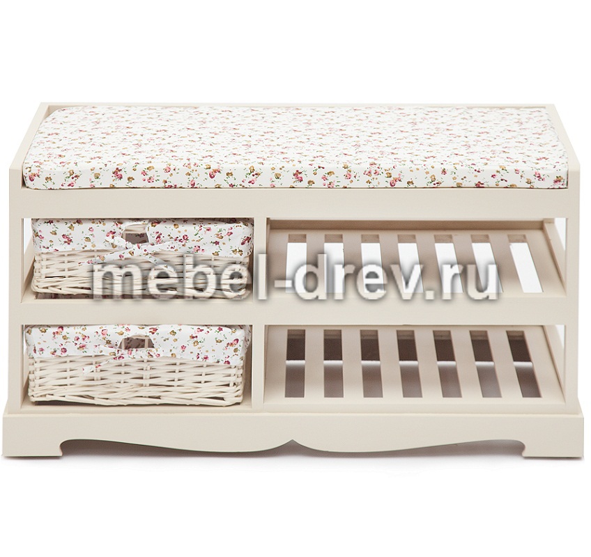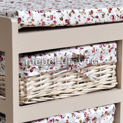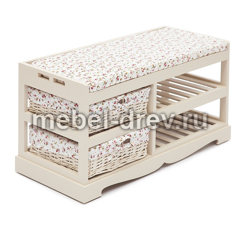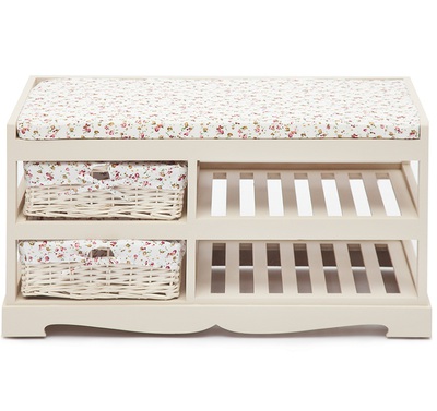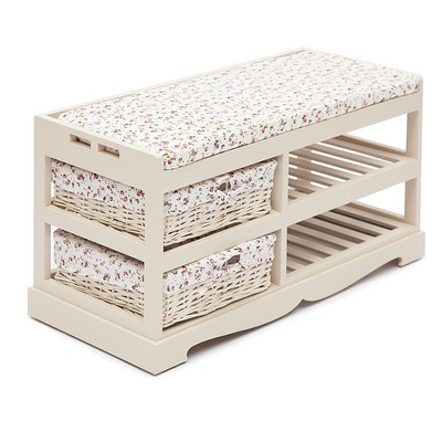 Легкая изящная обувница с выдвижными корзинками из плетеной ивы в стиле Прованс. Изготовлена из древесины дерева павловния, одного из самых легких видов древесины. Чехлы на корзинки съемные.