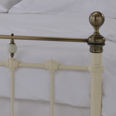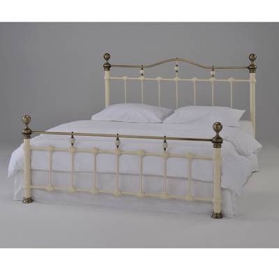 Двуспальная кровать с изящными спинками из металла. Двухцветная отделка. Выполнена на стальном усиленном каркасе с литыми стыковочными элементами.