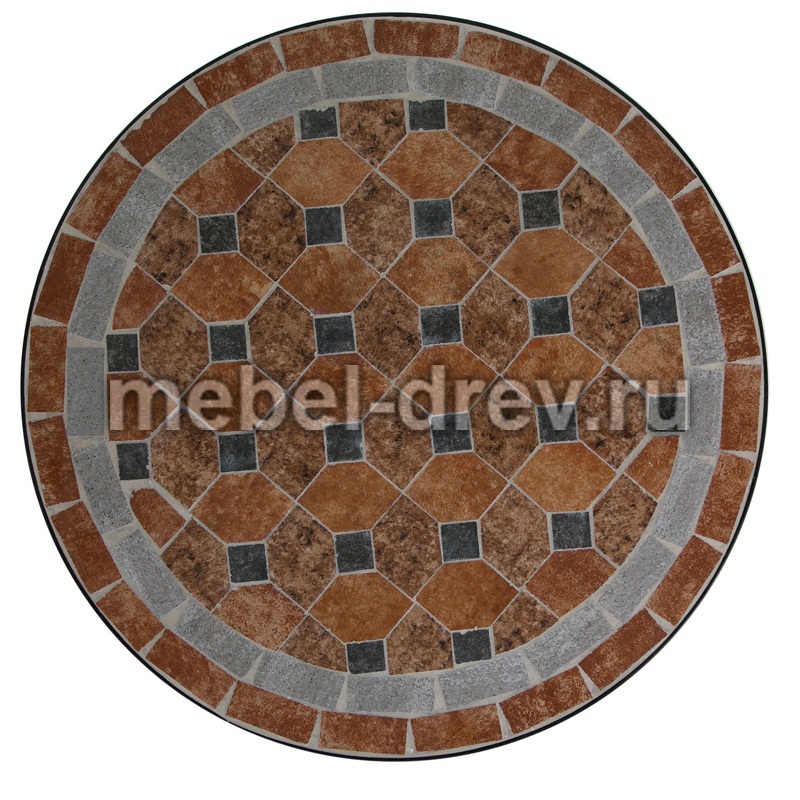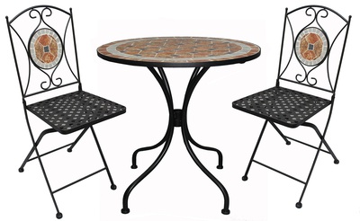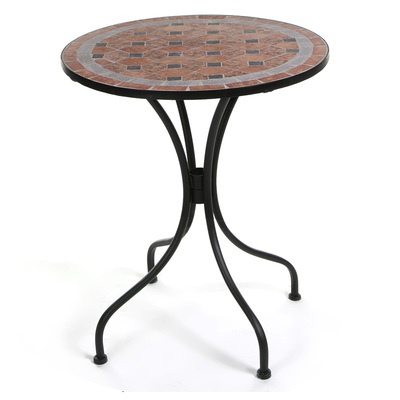 Изящный кованый столик для сада и летней веранды. Столешница столика украшена узором из плитки.
