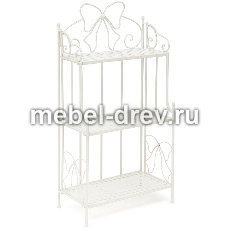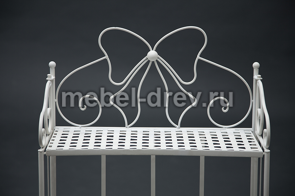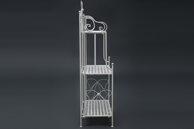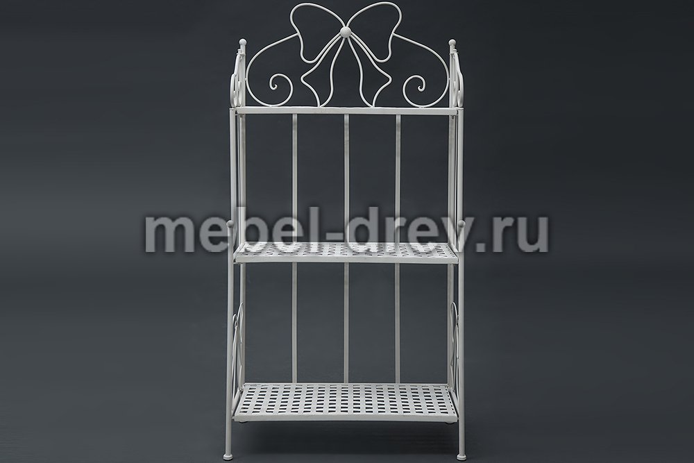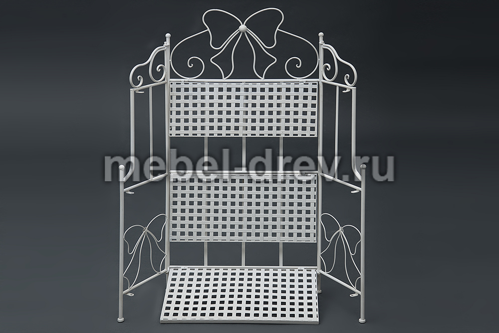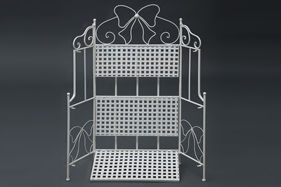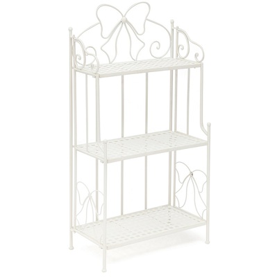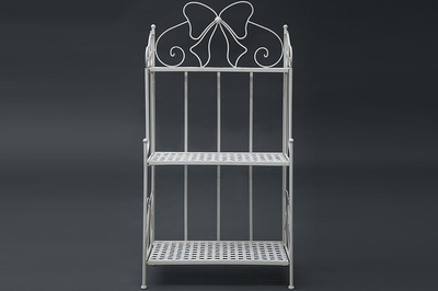 Невысокая складная кованая этажерка с 3 полочками. Изящная ковка с узорами, надежный стальной сплав позволят изделию служить долгие годы.