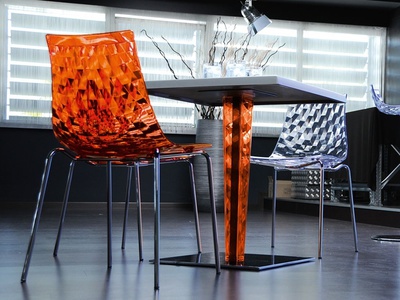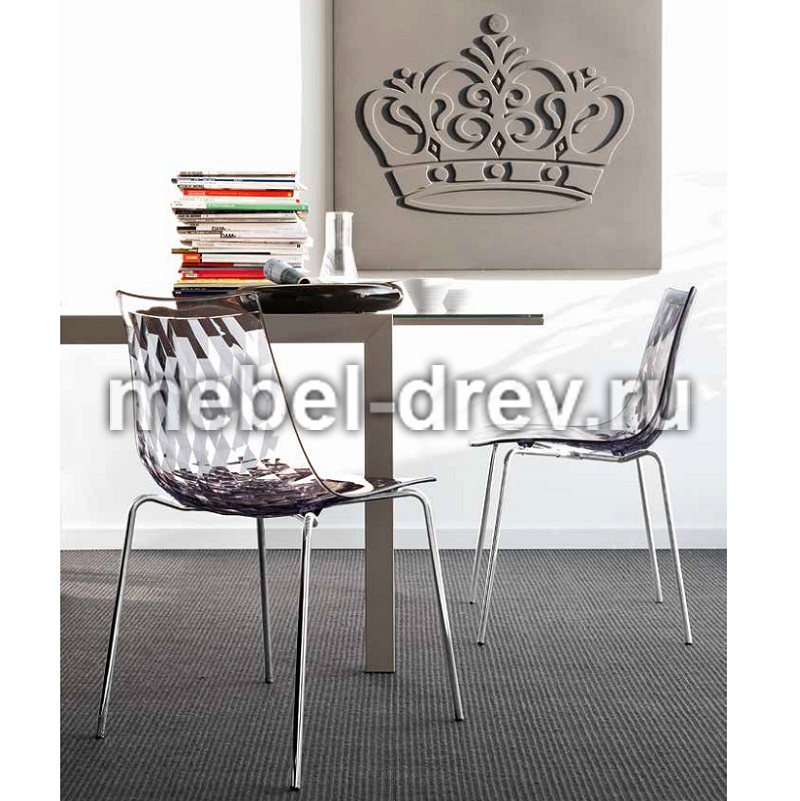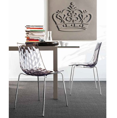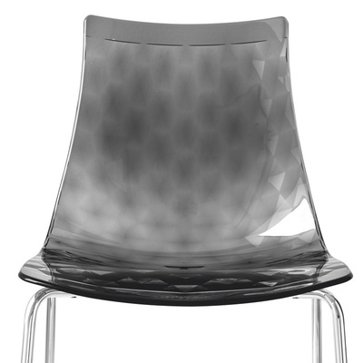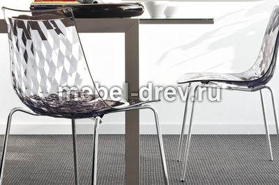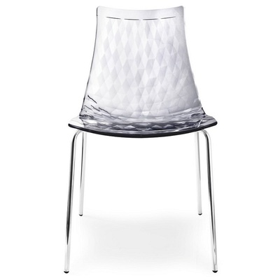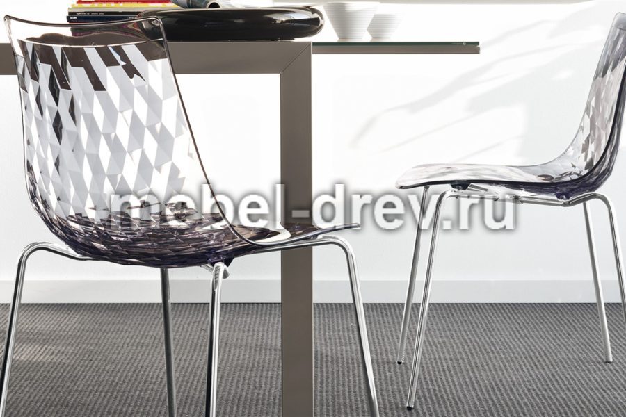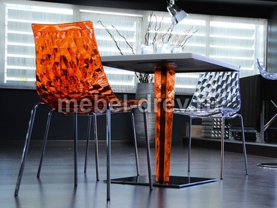 Очень легкий, удобный и прочный кухонный стул. Сделан из высококачественного прозрачного пластика на стальном хромированном каркасе, с рисунком на обратной стороне стула.