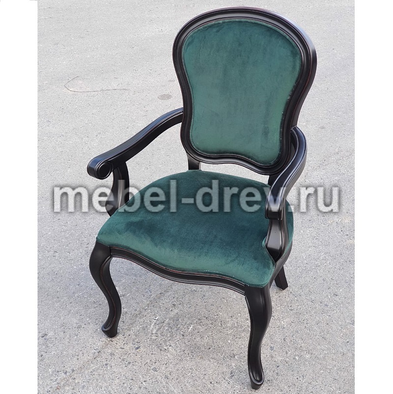 Шикарное кресло из натурального дерева, с мягким сиденьем. Сделано в стиле Прованс, из коллекции Belveder (Бельведер). Основание кресла-из массива березы, в оригинальном черном цвете, с искусственно состаренной поверхностью.
