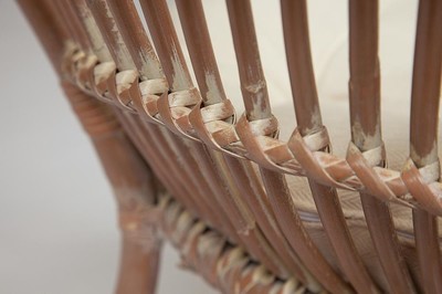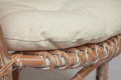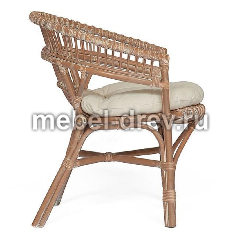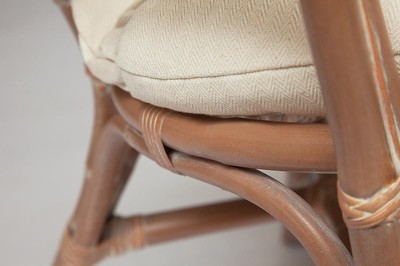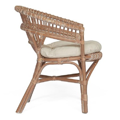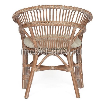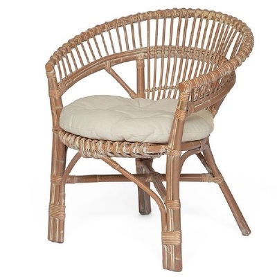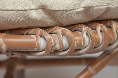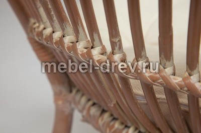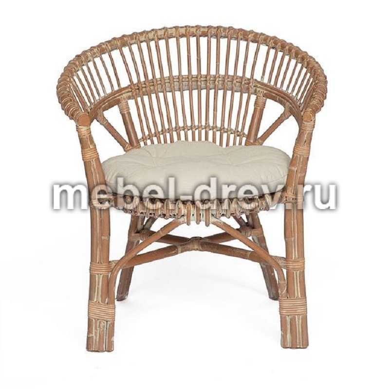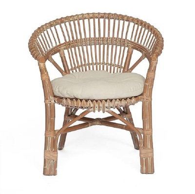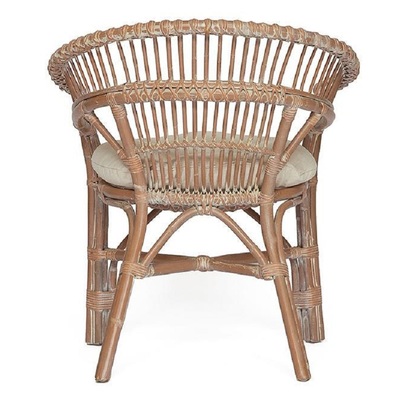 Кресло для веранды из натурального ротанга. Кресло на каркасе из толстого ротанга, сверху также плетеный ротанг. В комплекте мягкая подушка из ткани. Ротанг используется для летнего отдыха, открытых веранд и кафе, а также для дизайна загородного дома.