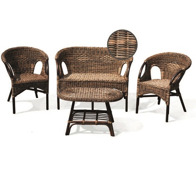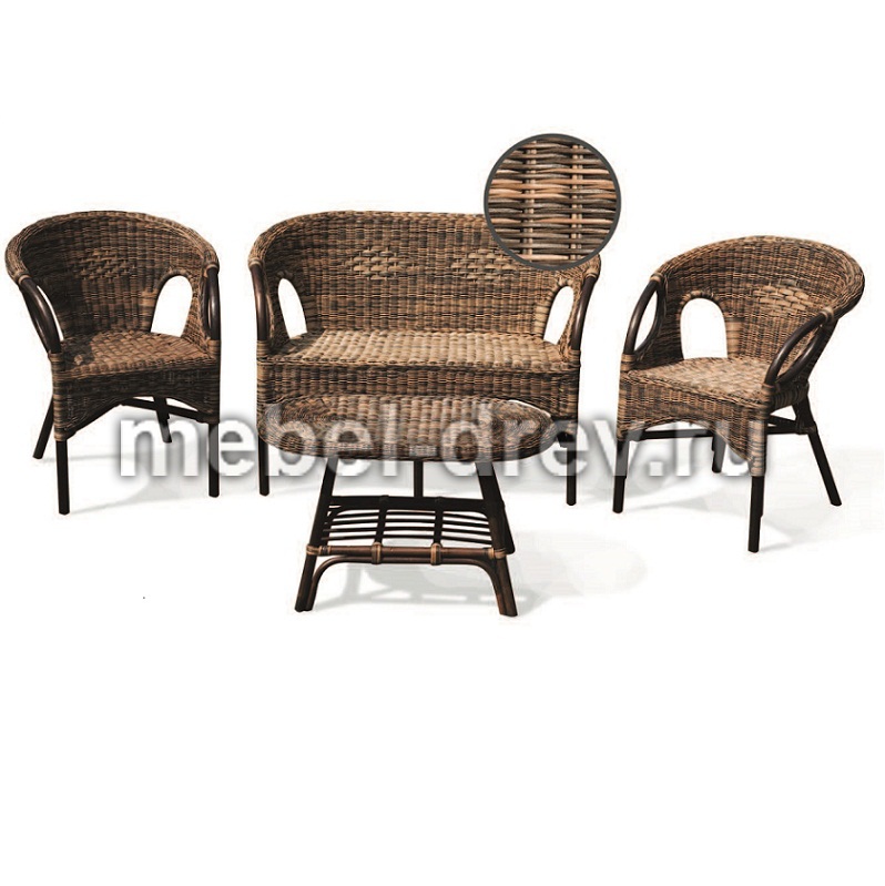 Плетеный комплект из двух кресел, диванчика и журнального столика Mandalino (Мандалино). Комплект сделан из ротанга и плетеных банановых листьев, изделия легкие и прочные.
