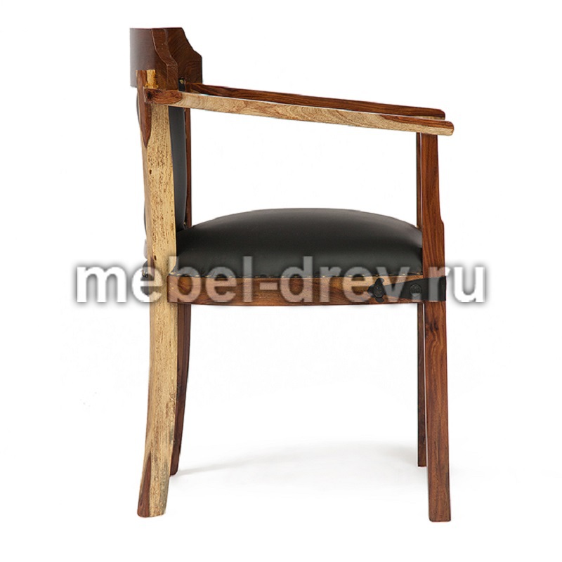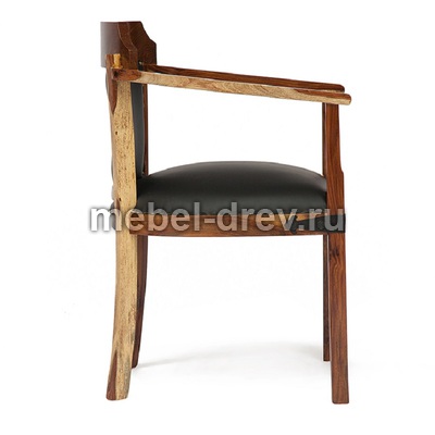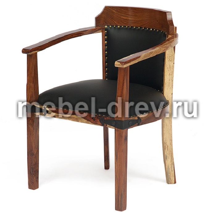 Удобное надежное кресло из натурального палисандра с подлокотниками. Обивка-кожзам. Массив палисандра-знаменитое розовое дерево Индии. Его уникальные качества: разнообразие текстуры, удивительная прочность и долговечность издавна привлекали мастеров для производства мебели. Кресло Бомбей послужит удачным дополнением к письменным и обеденным столам из серии Палисандр.