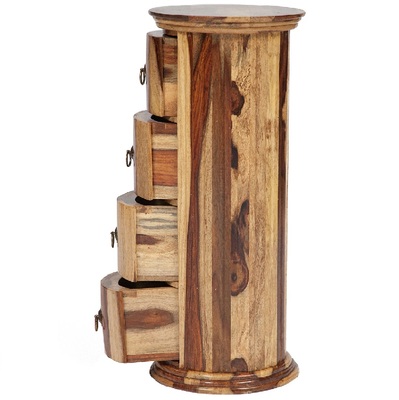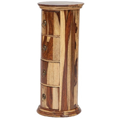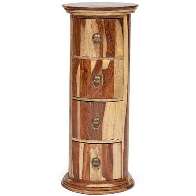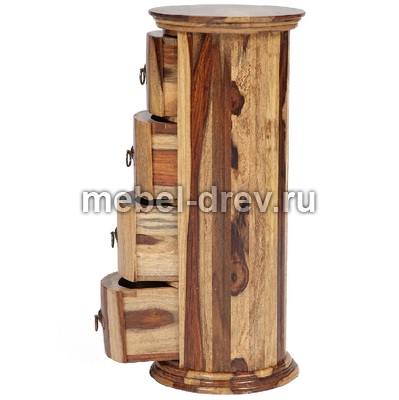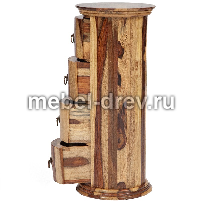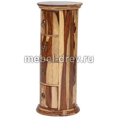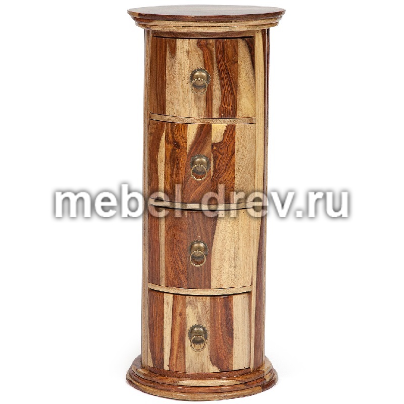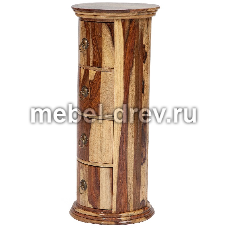 Высокая тумба с ящиками из натурального палисандра. Палисандр-знаменитое розовое дерево Индии. Его уникальные качества: разнообразие текстуры, удивительная прочность и долговечность издавна привлекали мастеров для производства мебели. Особенности тумбы Бомбей 0768-компактные размеры (диаметр столешницы всего 28 см) и четыре вместительных выдвижных ящика для хранения мелочей с винтажной фурнитурой из патинированной латуни. Тумба идеально подойдет для небольшого пространства прихожей или спальни, а также может использоваться в качестве придиванного столика.