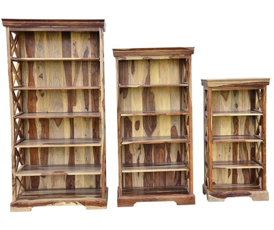 Шкафы для книг или стеллажи из натурального дерева, массива палисандра. Продаются набором 3 шт. разных размеров.