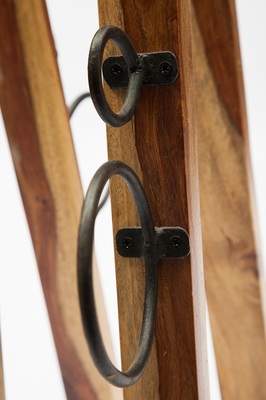 Винная этажерка из натурального палисандра. Оригинальная винная стойка-этажерка «Бомбей» изготовлена из массива палисандра, рассчитана на восемь бутылок и обладает всеми необходимыми профессиональными атрибутами. Подставки-держатели для вина выполнены из черного металла и позволяют расположить бутылки под нужным углом.