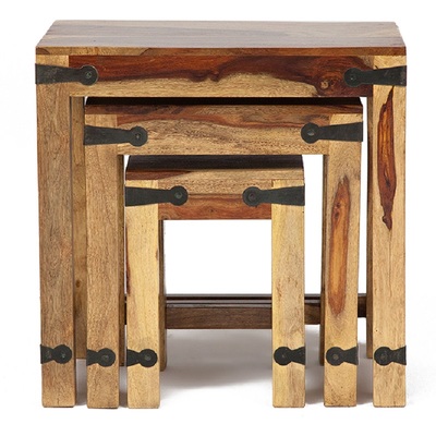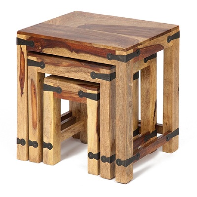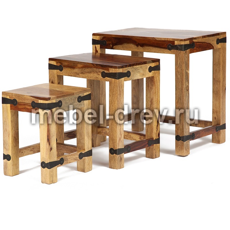 Набор табуреток или столиков из натурального палисандра. Массив палисандра-знаменитое розовое дерево Индии с необычным рисунком. Отделка табуретов-железные заклепки. Продаются набором из 3 шт.
