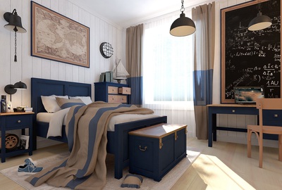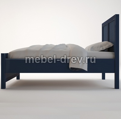 Стильная двуспальная кровать в стиле минимализма, из натурального дерева. Кровать сделана в строгом лаконичном дизайне, выкрашена в благородный оттенок темно-синего цвета. Такой цвет и его сочетания с другими цветами всегда смотрятся интересно, ярко и изысканно.