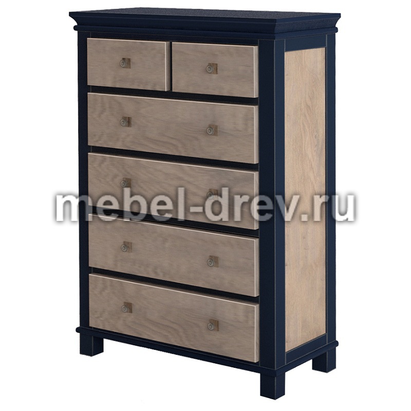 Стильный комод с 6 выдвижными ящиками в стиле минимализма, из натурального дерева. Комод сделан в строгом лаконичном дизайне. Оформление комнаты с использованием оттенков синего цвета может стать изюминкой вашего интерьера. Комод изготовлен из массива березы и ясеня.