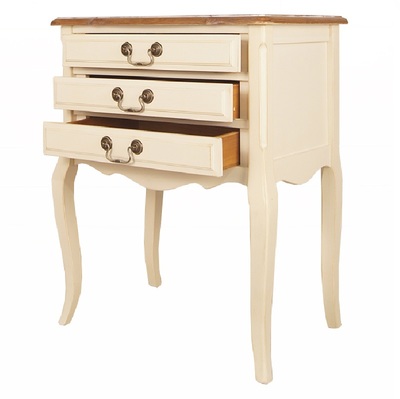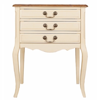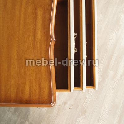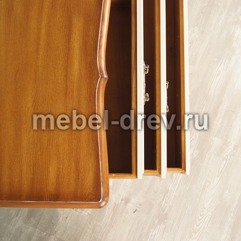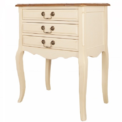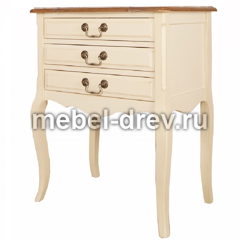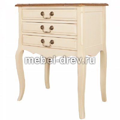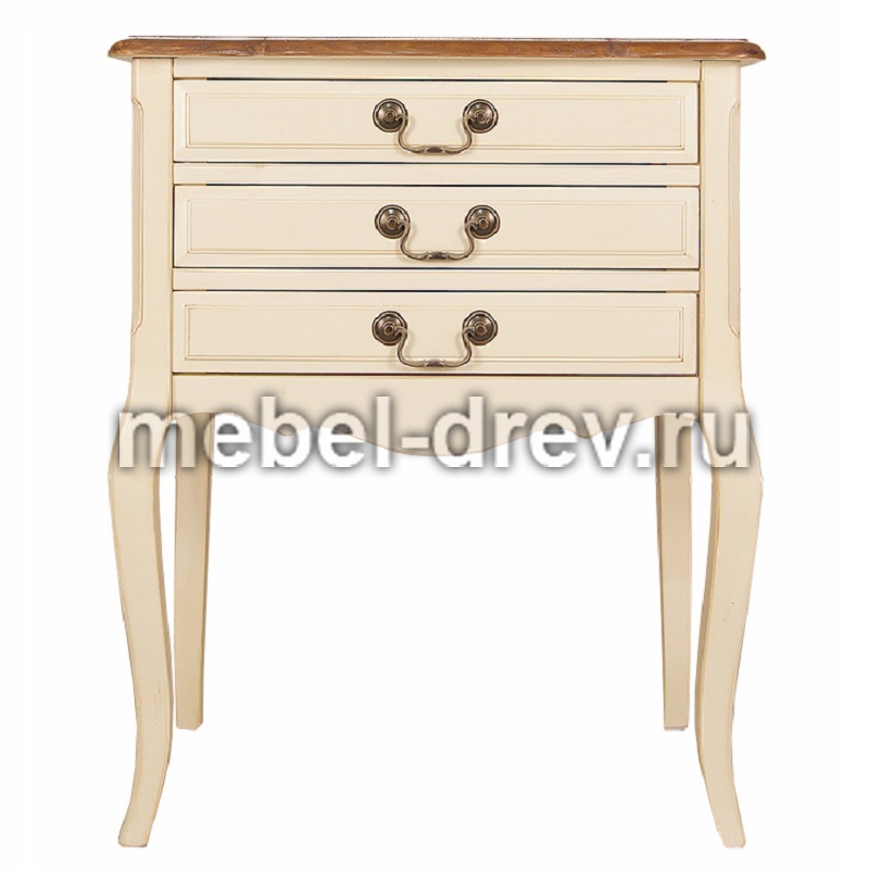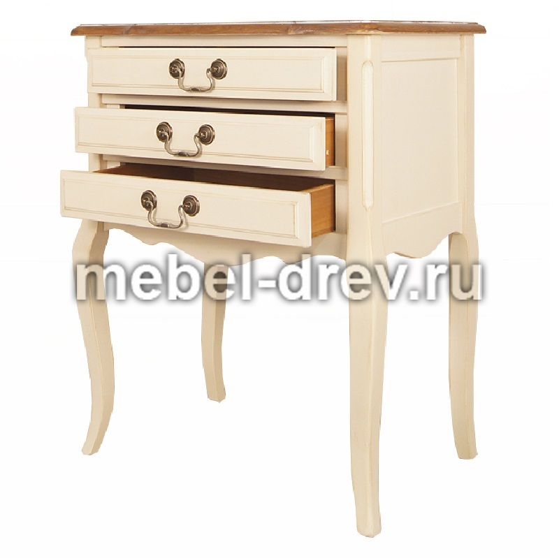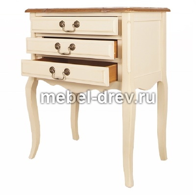 Изящная тумба на изогнутых ножках Leontina/Леонтина. Сделана в стиле Прованс, с тремя выдвижными ящиками, из натурального дерева: каркас-массив березы, столешница-ясень.