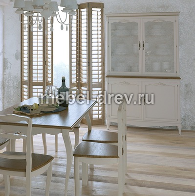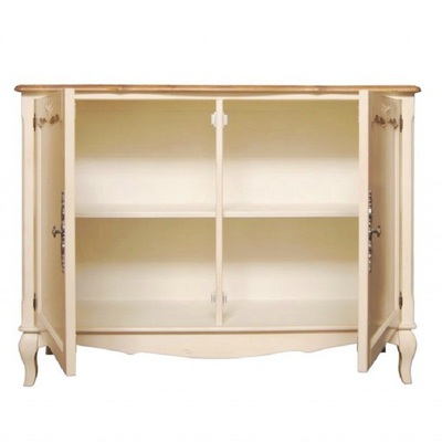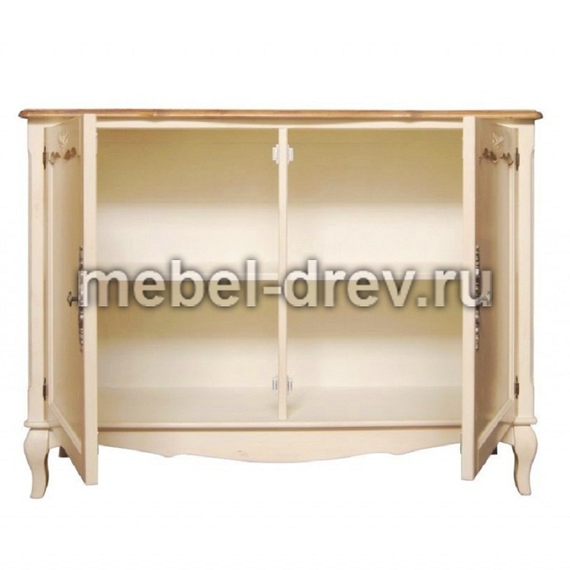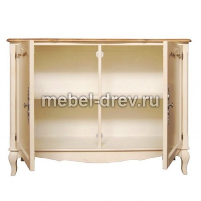Широкий резной комод на изогнутых ножках Leontina/Леонтина. Сделан в стиле Прованс, с открывающимися дверцами и полочками, из натурального дерева: каркас-массив березы, столешница-ясень. Может использоваться отдельно, как комод, а также, как буфет-смотрите Буфет Леонтина ST-9332.