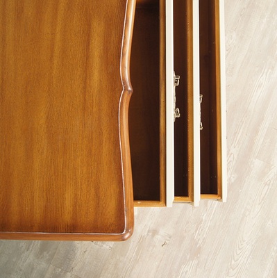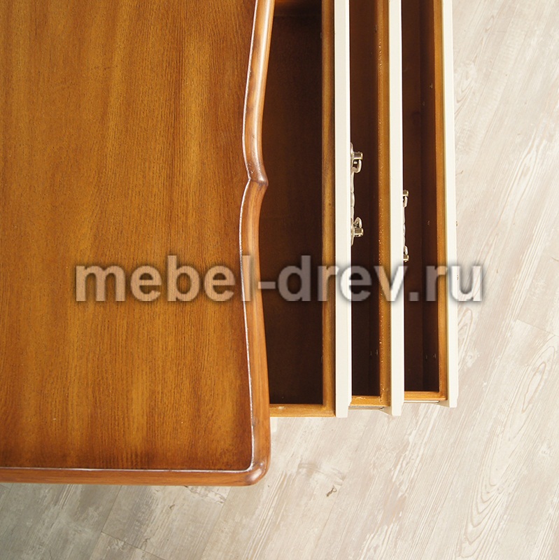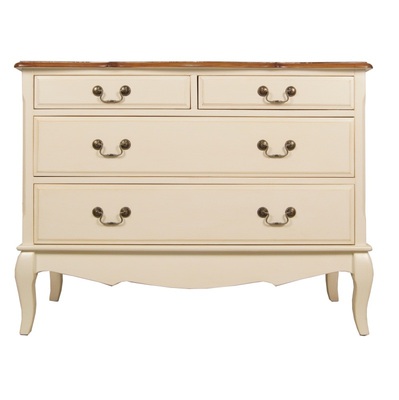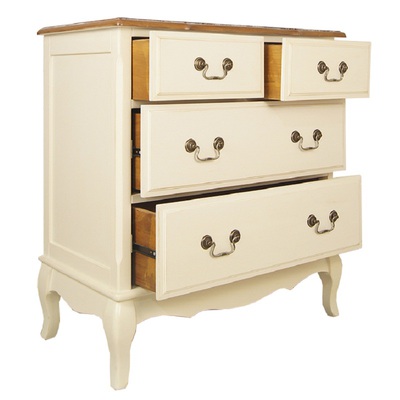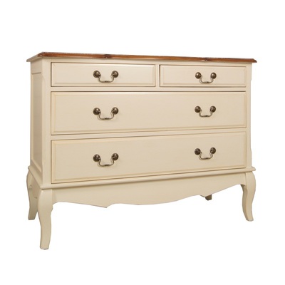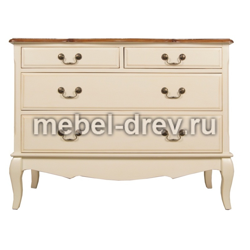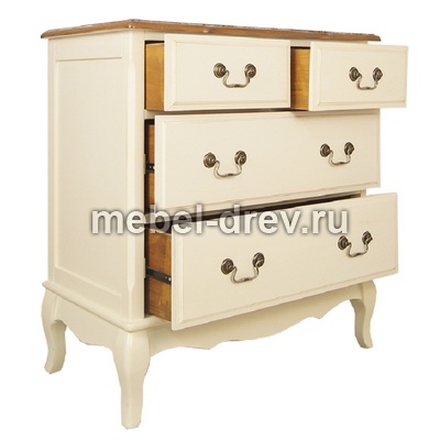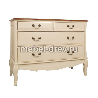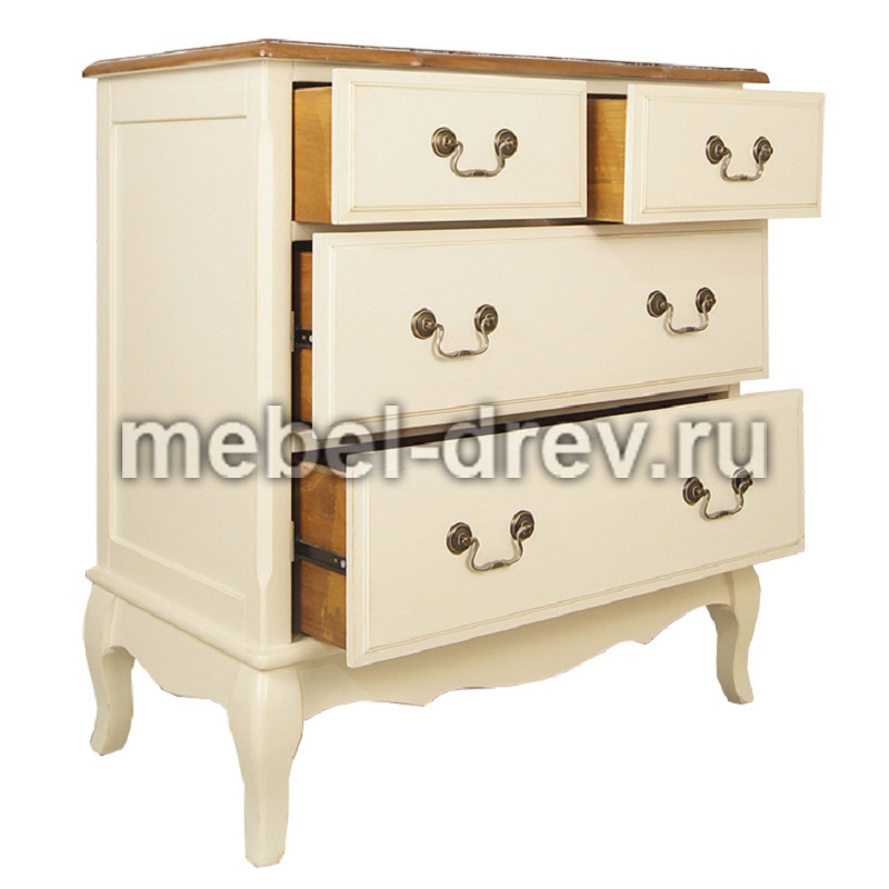Изящный комод Leontina/Леонтина на изогнутых ножках и с резным подстольем. Сделан в стиле Прованс, с четырьмя выдвижными ящиками. Комод изготовлен из натурального дерева: каркас-массив березы, столешница-ясень.