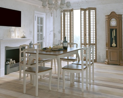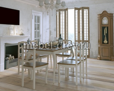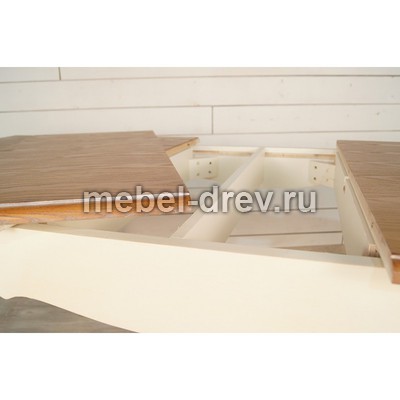 Изящный обеденный стол в стиле Прованс из серии Leontina/Леонтина. Стол на изогнутых ножках, с резным подстольем. Изготовлен из натурального дерева: каркас-массив березы, столешница-ясень. Стол прямоугольный, раскладной, раскладывается до 2м. Посмотрите также нераскладной стол Леонтина ST-9337М.