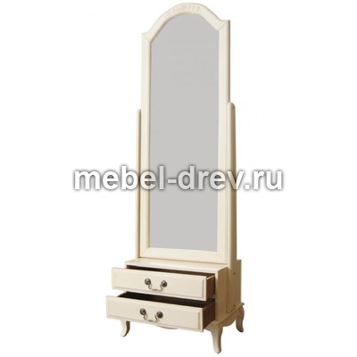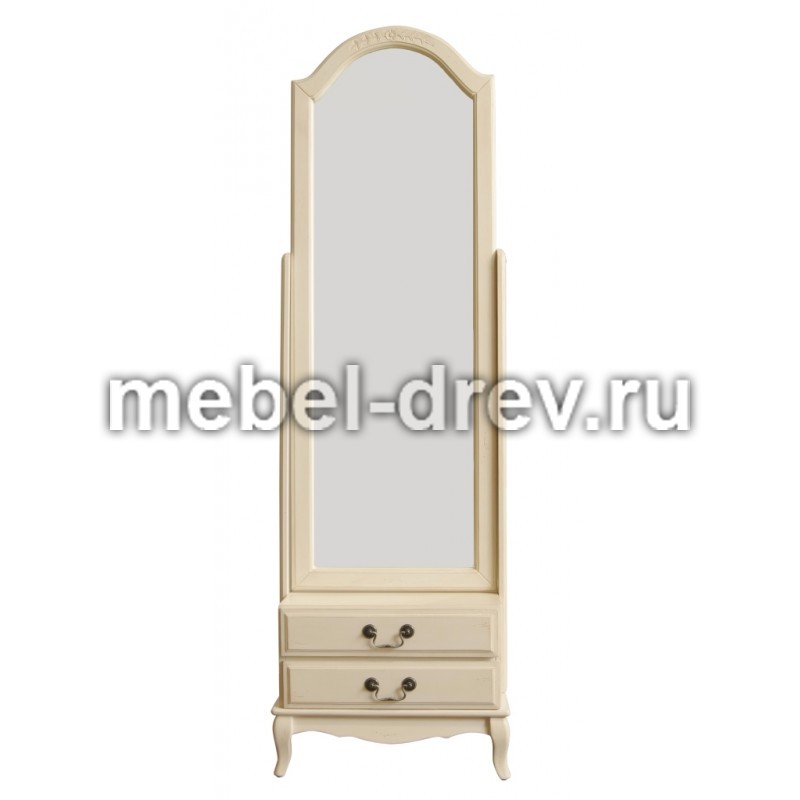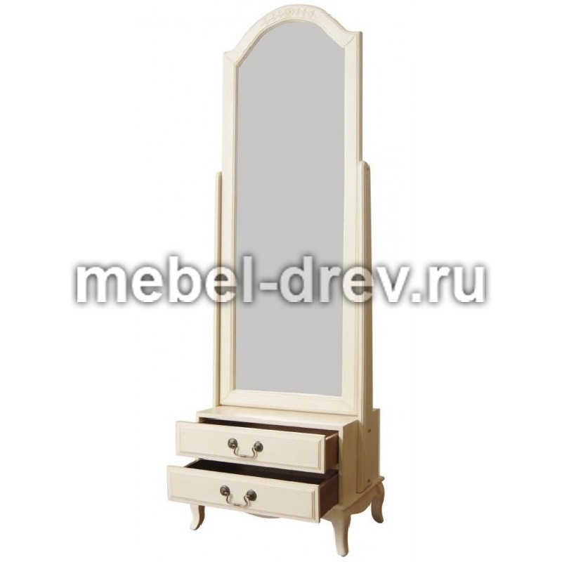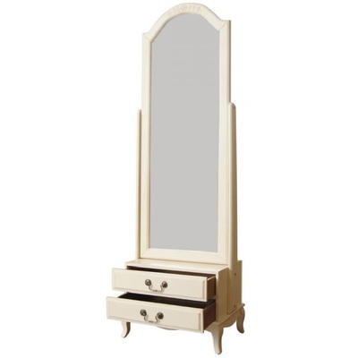 Изысканное напольное зеркало в стиле Прованс из коллекции Leontina/Леонтина. Сделано из массива березы, с двумя выдвижными ящиками для мелочей.