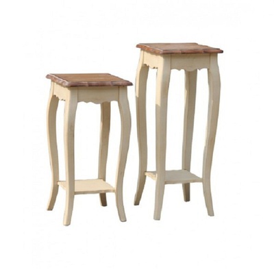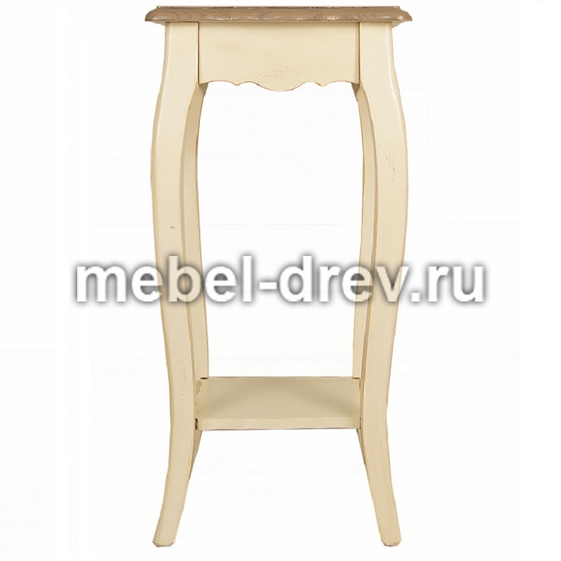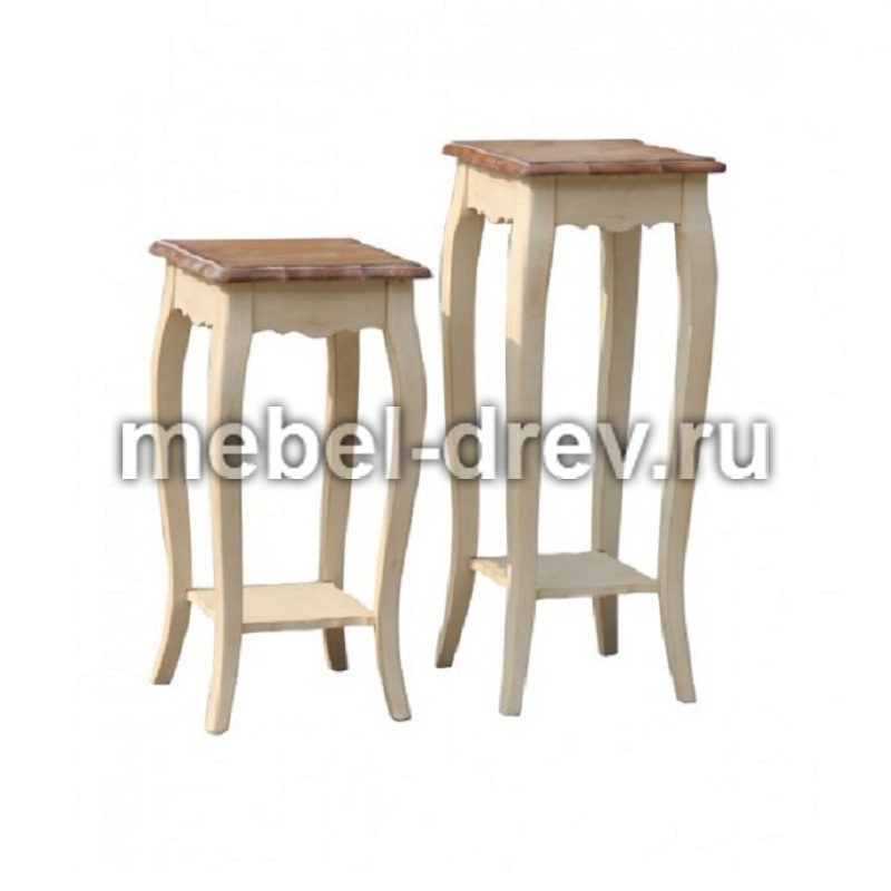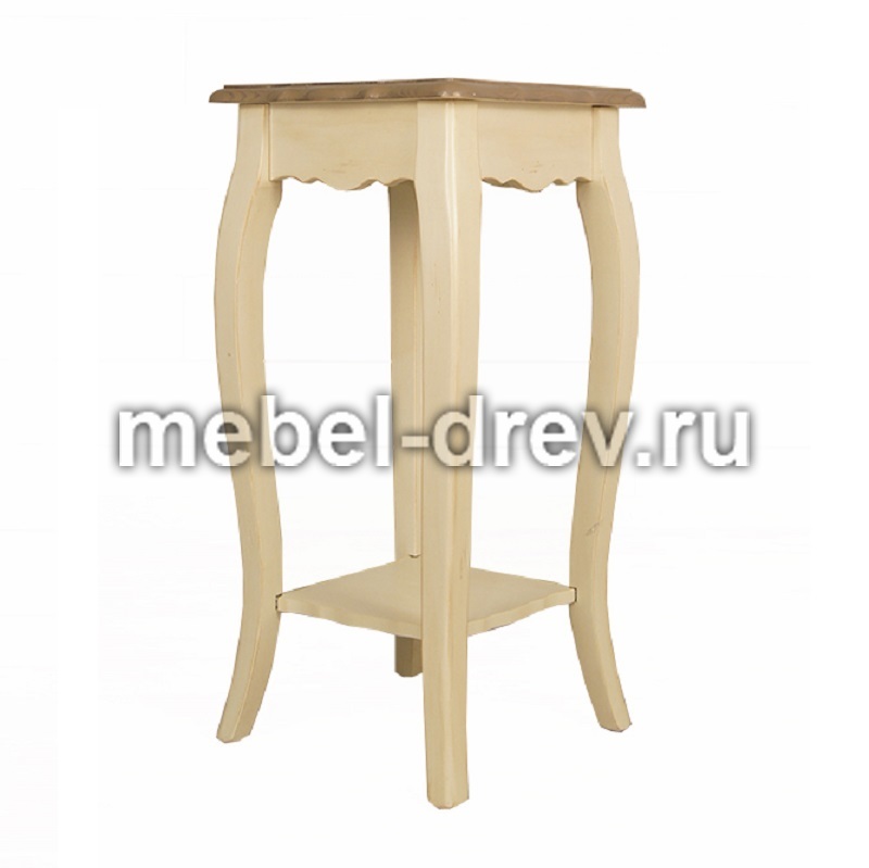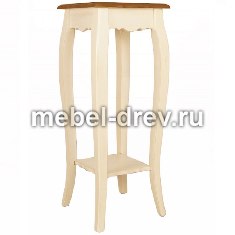 Изящная подставка под цветы на изогнутых ножках Leontina/Леонтина. Сделана в стиле Прованс, из натурального дерева: каркас-массив березы, столешница-ясень. Подставка представлена в 2 размерах.