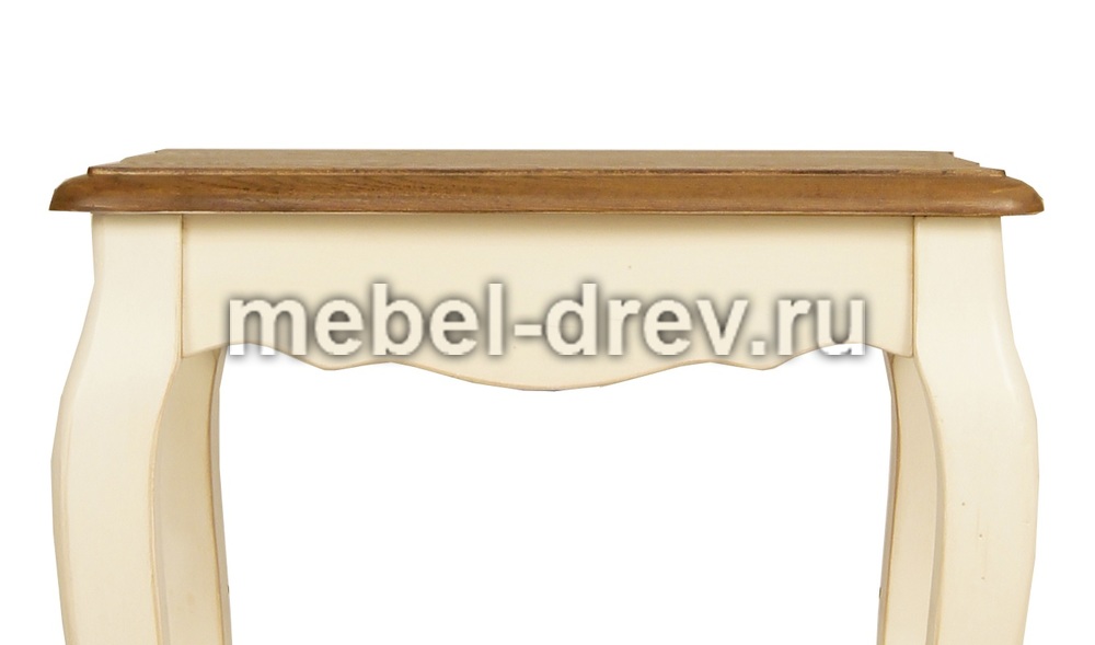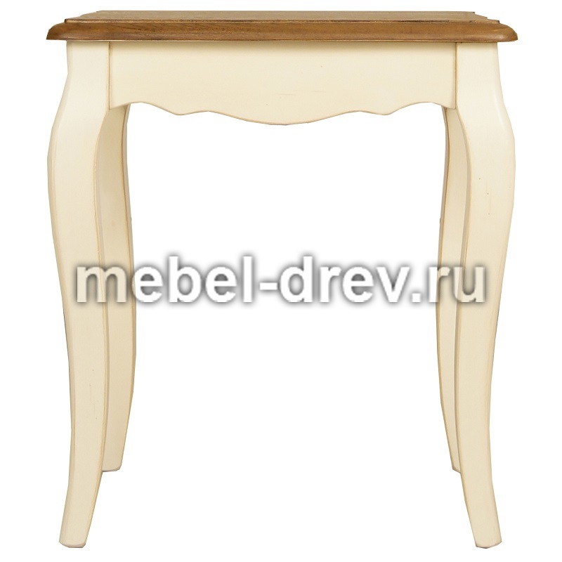 Изящный табурет с жестким сиденьем на изогнутых ножках в стиле Прованс. Сделан из натурального дерева: каркас-массив березы, сиденье-ясень. Удачное дополнение к туалетным столам и письменным столам из серии Леонтина.