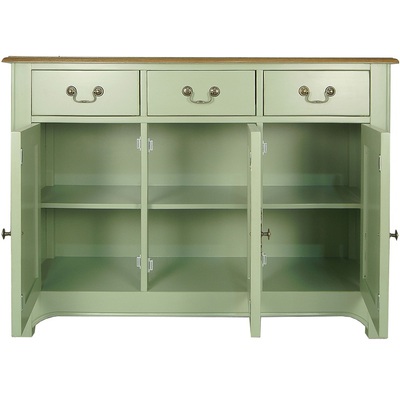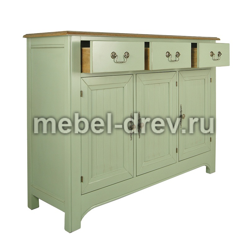 Широкий вместительный комод из натурального дерева в стиле Прованс. Практичный и надежный, сделан из массива березы, столешница-ясень, свою изюминку комоду придает литая фурнитура "под бронзу". У комода 3 выдвижных вместительных ящика, которые позволяют разместить большое количество нужных вещей и полочки за распашными дверцами.