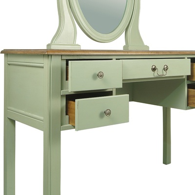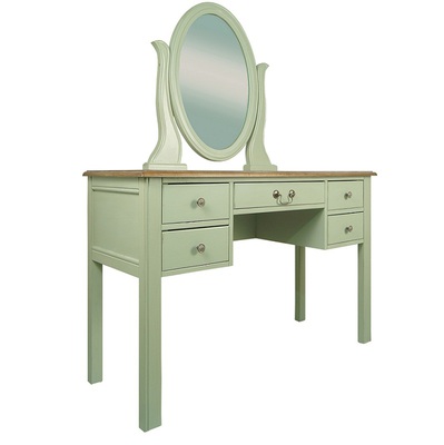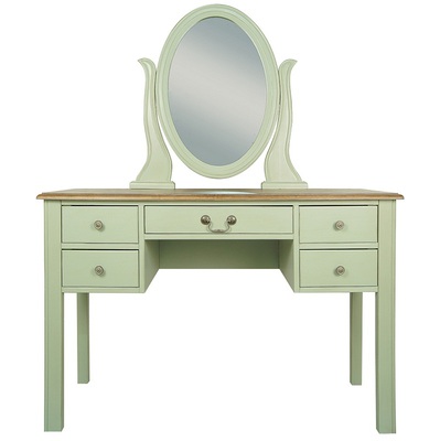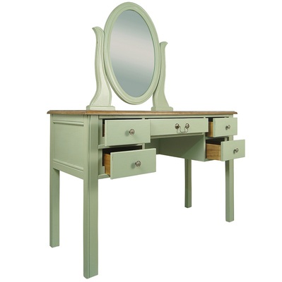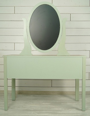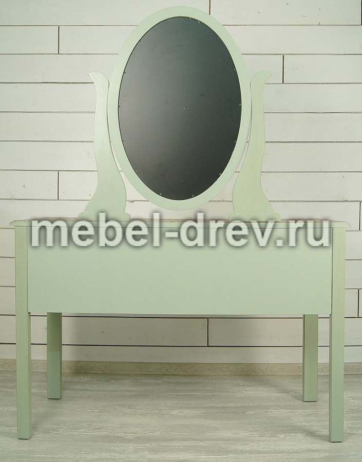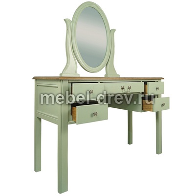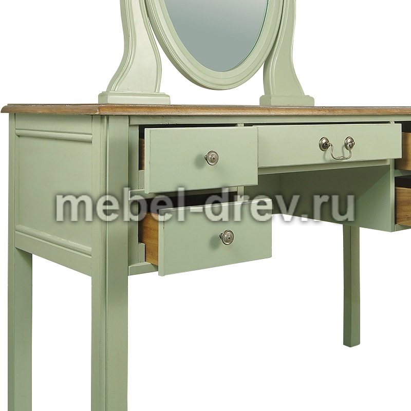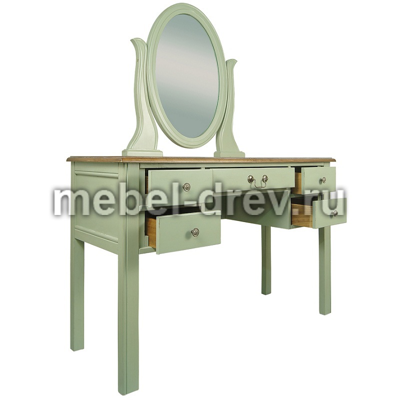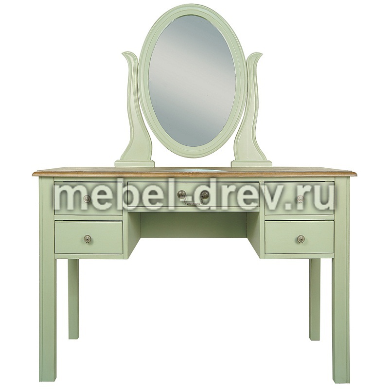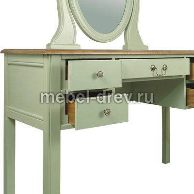 Туалетный стол в строгом лаконичном дизайне. Стол сделан из массива березы, в стиле Прованс, из коллекции мебели Оливия. Стол с 5 выдвижными ящиками для мелочей и зеркалом.
