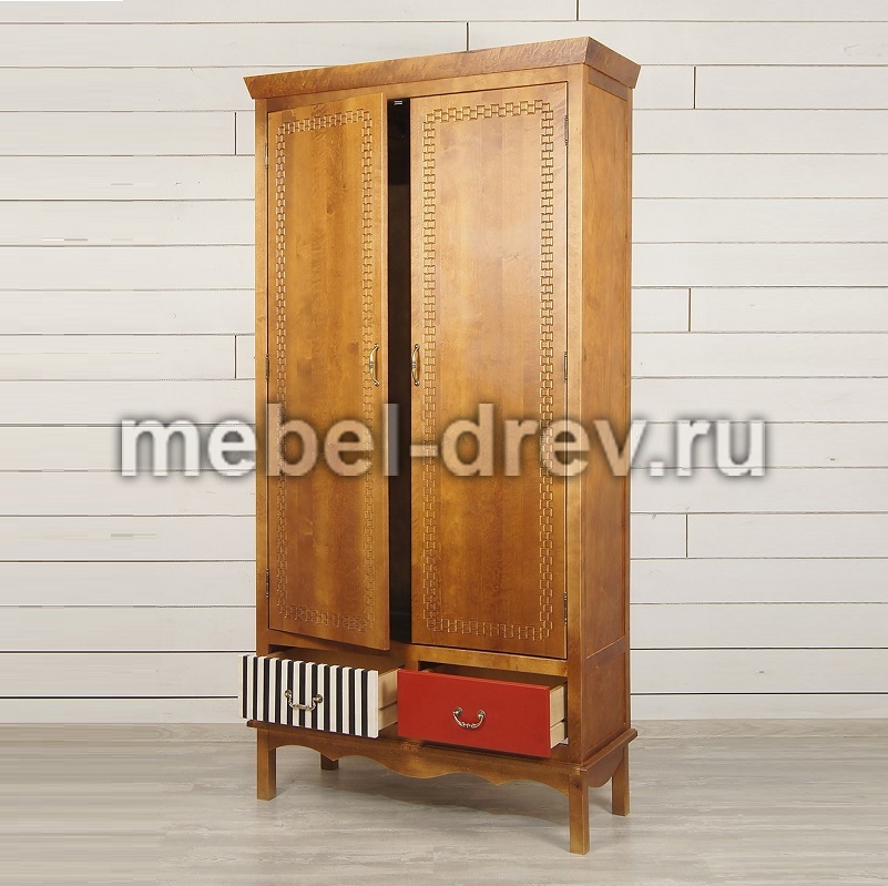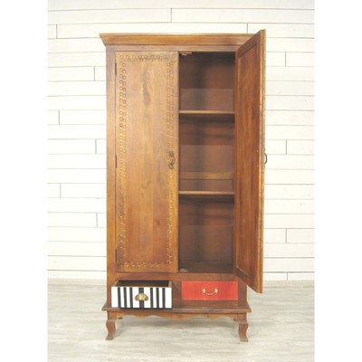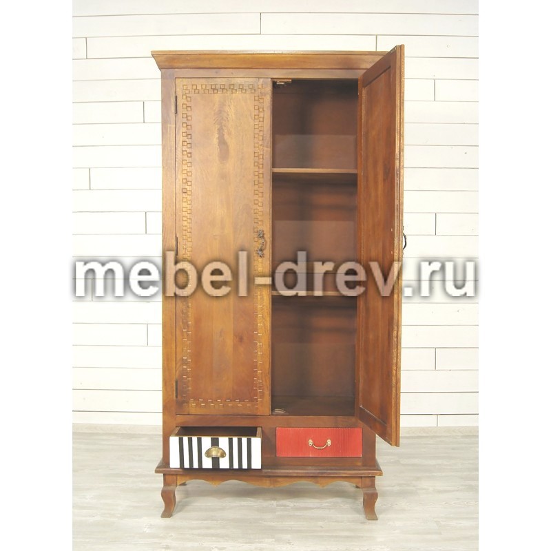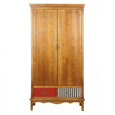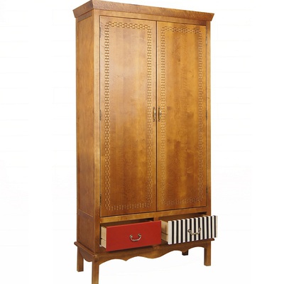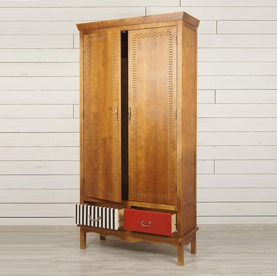 Шкаф двустворчатый Gouache (Гуашь) изготовлен в стиле Поп-арт, по проекту бельгийских дизайнеров. Забавная неожиданная раскраска ящиков этого шкафа вносит свою изюминку и делает дизайн шкафа необычным. Сделан из массива березы, с искусственно состаренными поверхностями. У шкафа 2 выдвижных ящика с разным окрасом и разной фурнитурой и 2 поперечные полочки за распашными дверями.