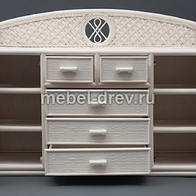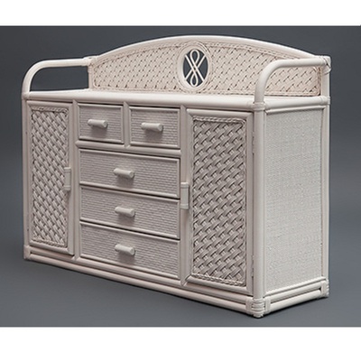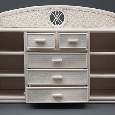 Комод Andrea с выдвижными ящиками из натурального плетеного ротанга. Ротанг может выдержать очень большой вес, при этом изделия из него очень легкие. Мебель из ротанга не рассыхается, не выцветает, влагоустойчива, пригодня для использования в бассейне, сауне, неотапливаемом помещении.