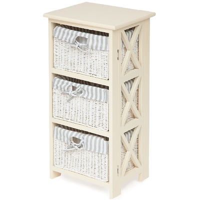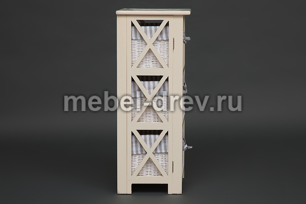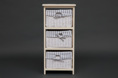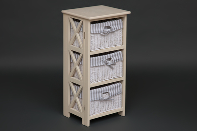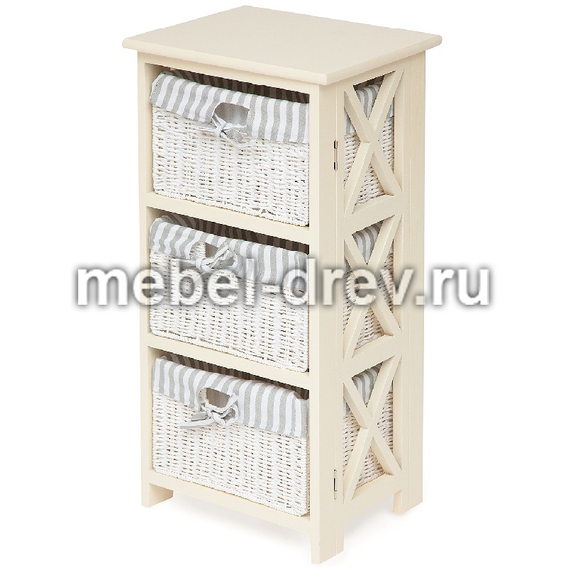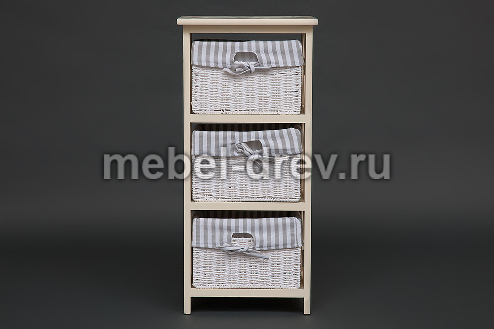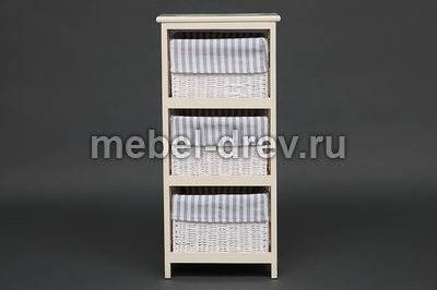 Тумба с 3 корзинами из бумажного жгута. Тумба сделана в стиле Прованс, из древесины дерева павловния, одного из самых легких видов древесины. Чехлы на плетеные корзинки съемные.