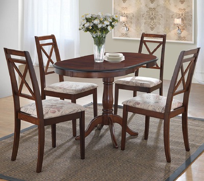 Раскладной обеденный стол в классическом итальянском стиле. Столешница со вставкой, которая убирается под столешницу с помощью удобного механизма. С помощью вкладки 29 см стол раскладывается до 129 см.