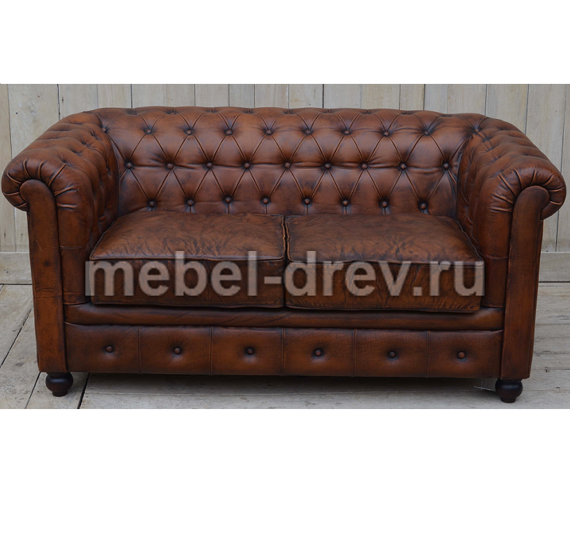 Шикарный двухместный диван Chester (Честер) в модном стиле Лофт. Каркас дивана-из массива палисандра, на пружинном основании. Обтянуто кожей буйвола, с отделкой прострочкой и пуговицами.