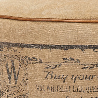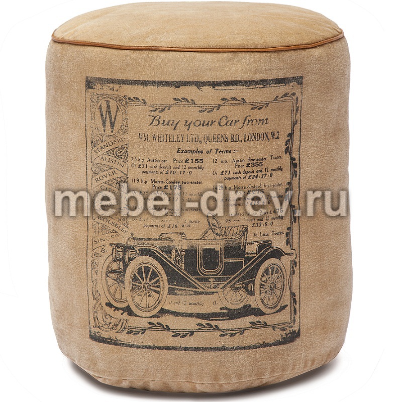 Круглый пуф Ranger (Рангер) в модном стиле Лофт. Обит хлопковой тканью Винтаж с отделкой кожей буйвола.
