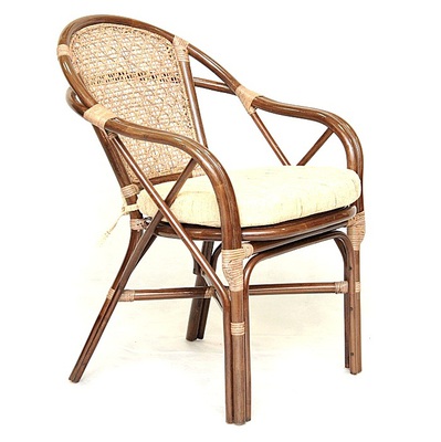 Обеденный комплект для летней веранды, сада или кафе из гибкого, прочного натурального ротанга. В комплекте обеденный стол и 2 стула. Ротанг может выдержать очень большой вес, при этом изделия из него очень легкие.